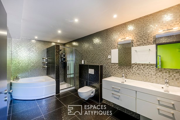 Nearly 300 sqm of open spaces offer a rare living experience for lovers of design and atypical spaces. From the entrance, you will be captivated by the clean lines where each room has been designed to maximize the functionality of the places creating an atmosphere with so-called 'masculine' characteristics: straight and angular lines, minimalist decor, sober colors where gray is king. Incredible volumes where nothing is missing: games room, gym, laundry room and dressing room will delight all members of the family.