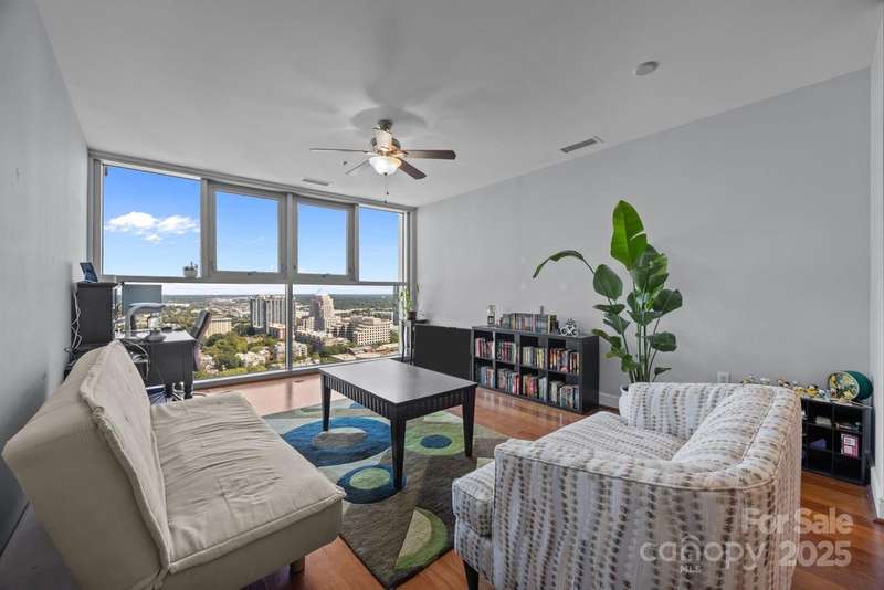 Come to see the view from the 26th floor of the Trademark. BB&T ball park greets you once stepping out of the elevator. Upon entering the unit, overlook the vibrant skyline views from the living room. Experience the natural canvas interchange from dawn to dusk. The unit's parking space on P4 being close to the elevator brings an extra convenience. HVAC is only two years old. Fresh paint. Don't miss out the 7th floor's lux amenity, outdoor pool & gym. Also the walkability to the major uptown buildings can save you more time on the commute.