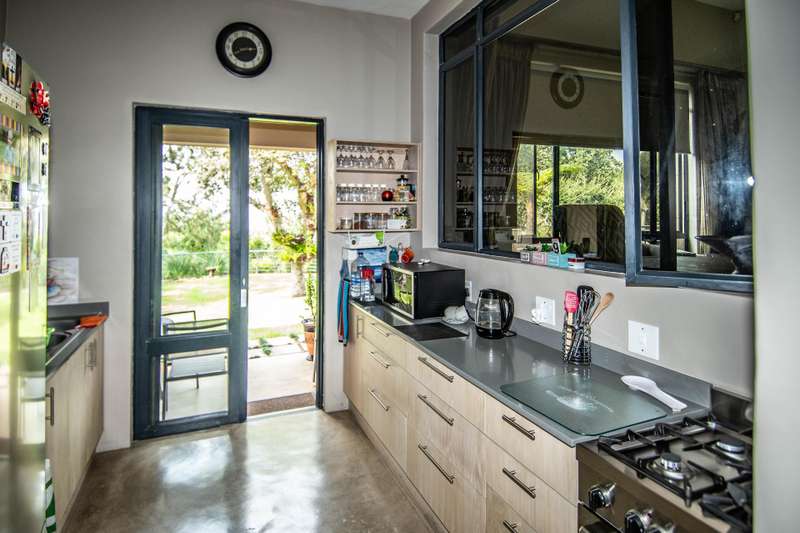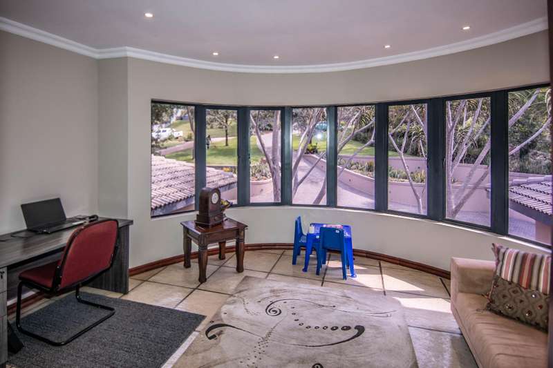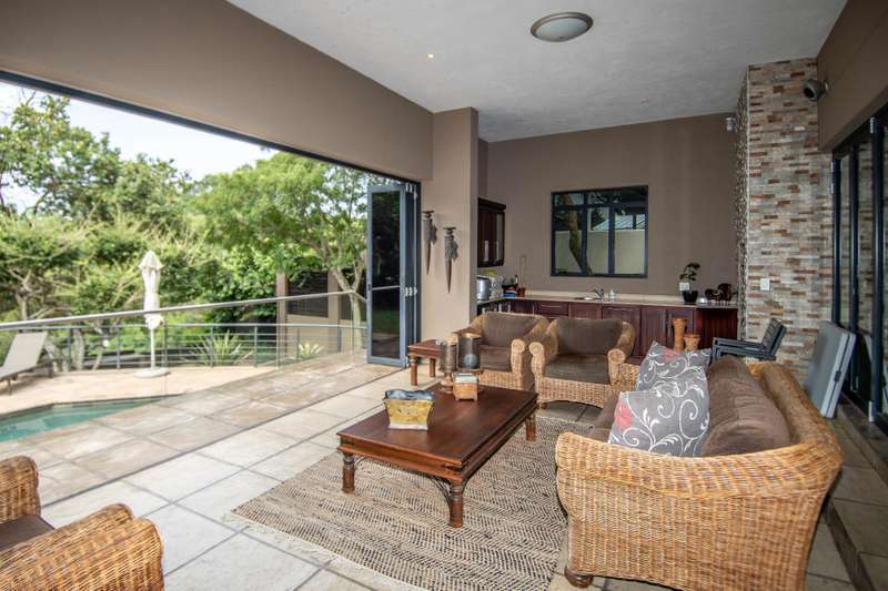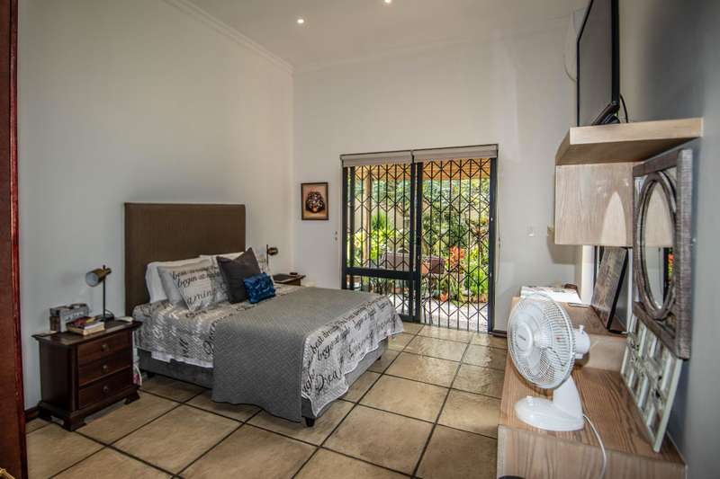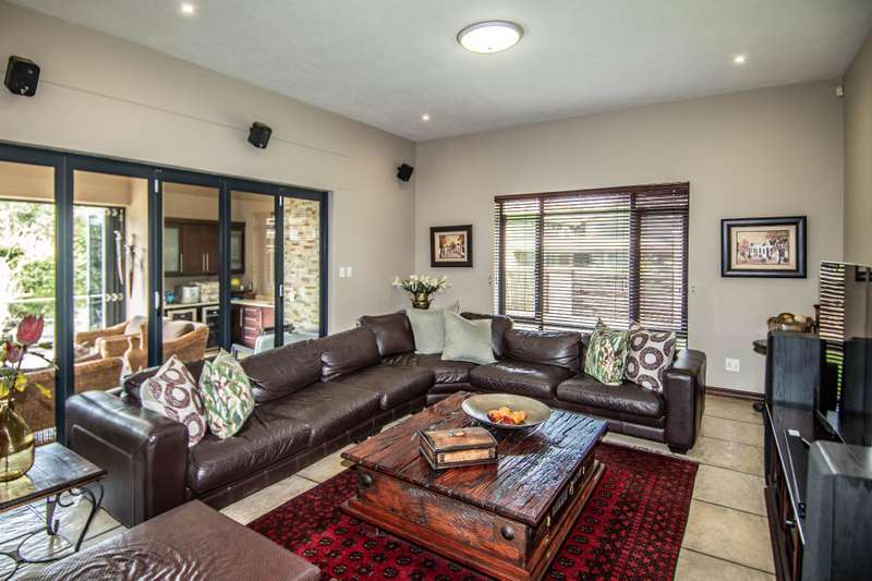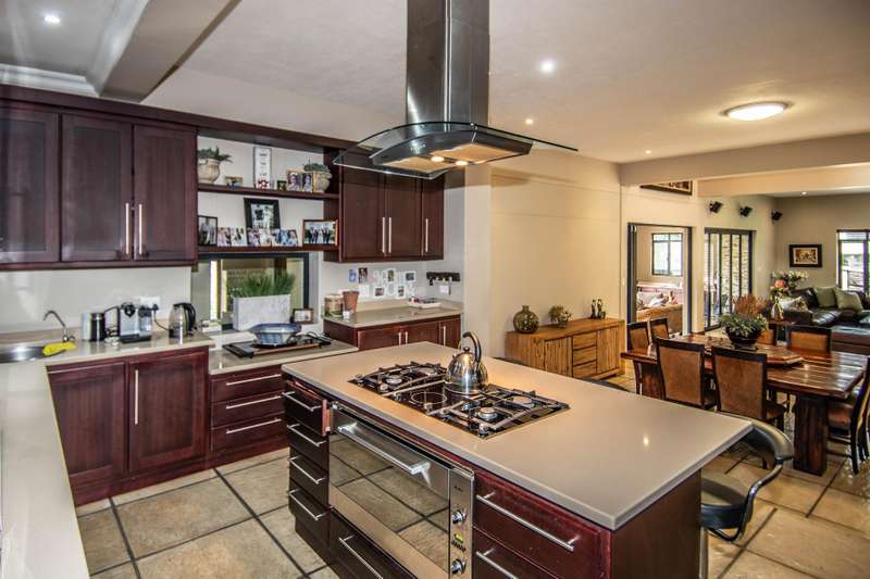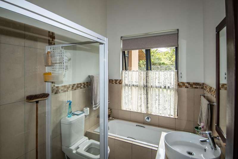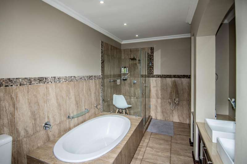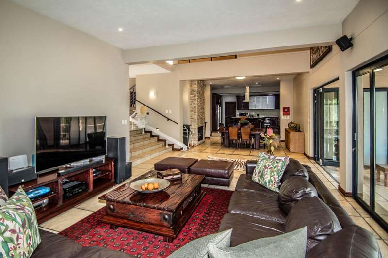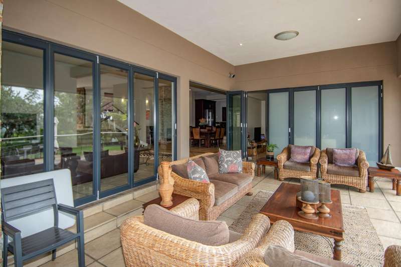 Set within Shandon Eco Reserve, this majestic family home has been impeccably maintained and cherished by it?ÇÖs owner & boasts a feature entrance which flows elegantly through extra large living areas with high ceilings & gas fireplace, off the gourmet kitchen with Caesar Stone counter tops, centre island, gas stove, walk in fridge, pantry, scullery and laundry. The lower level also hosts a study, 2 bedroom guest suite with its own kitchen, lounge and full bathroom the home spills onto a large enclosed patio with built in braai and out onto the private, manicured garden and sparkling swimming pool. The upper level of this mansion presents 3 generous bedrooms with built in cupboards, all complimented by spotless modern bathrooms en suite ( the main has a full bathroom, walk in dressing room and outdoor shower ) and pyjama lounge. Added features include 4 garages with direct access into the home, solar panels, generator, 5000l water storage tanks, borehole and irrigation system. The private boma area with views over nature and surrounding Lowveld gives one a truly unique entertainment option. Shandon eco reserve is a well-managed wildlife estate which offers a tranquil lifestyle, top notch security and roaming Giraffe, Zebra, Kudu and Impala on vast green plains. Located on the outskirts of Nelspruit just a few minutes?ÇÖ drive to the Nelspruit CBD, several schools, major routes and various retail & dining options.