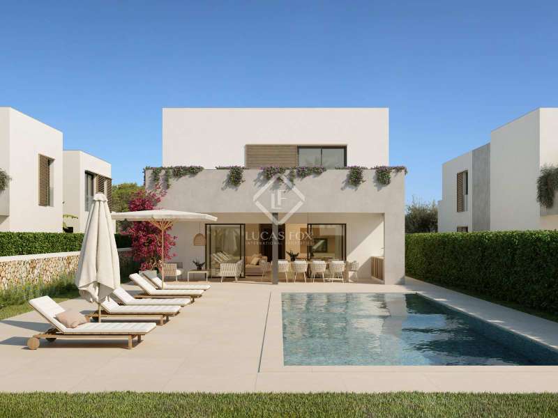 Lucas Fox presents this new build villa in a development located in the famous Cala'n Porter development , a few minutes from the beach. It is located near the incredible white sand beach of Cala'n Porter, in the municipality of Alaior. This newly built villa has an area of 240 m² on a plot of approximately 800 m². The property is distributed in two floors. The ground floor has the garage, a double bedroom with a built-in wardrobe , a bathroom and a large living-dining room with an integrated Open kitchen . The large windows allow natural light to enter throughout the day. From the living room, we can access the porch and the garden with pool. The first floor has three double bedrooms with built-in wardrobes and a private bathroom with access to a terrace with beautiful views of the Cala'n Porter canyon and distant views of the sea. The finishes and design are fully customizable. There is a wide range of materials to choose from for each room. The property has a beautiful garden area with swimming pool and private garage. The gardens are separated by dry walls typical of Menorca. An ideal property for families, either as a first or second home in a privileged development . The development has a building permit and will begin in April 2024. Contact us for more information, or to arrange a visit.