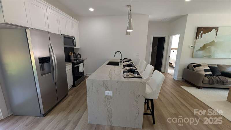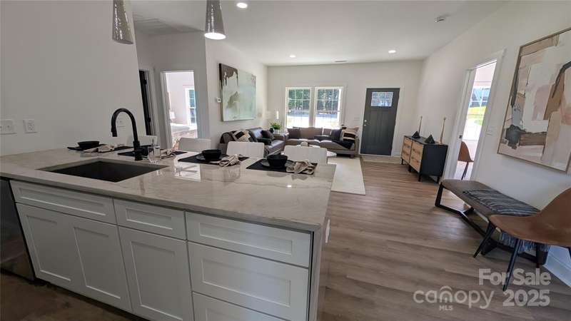 Enjoy modern living in this brand-new home nestled in the well-established Crystal Falls neighborhood. This 3-bedroom, 2-bath home features an open-concept layout with high ceilings, recessed lighting, and a show-stopping waterfall island in the kitchen, complete with stainless steel appliances. The spacious primary suite includes a walk-in closet and a beautifully finished bath. Two additional bedrooms, a dedicated laundry room, and a covered carport provide comfort and convenience. Sitting on a half-acre lot, this home blends modern design with room to relax don t miss this opportunity! The seller is offering to pay $5000 towards buyer's closing costs. Refrigerator is included! Interior pictures are of a similar model with a smaller living room.