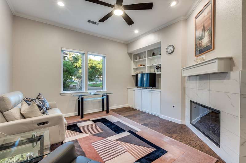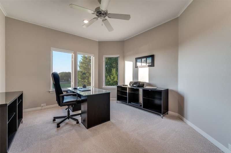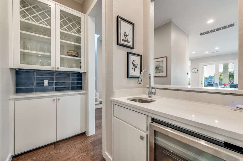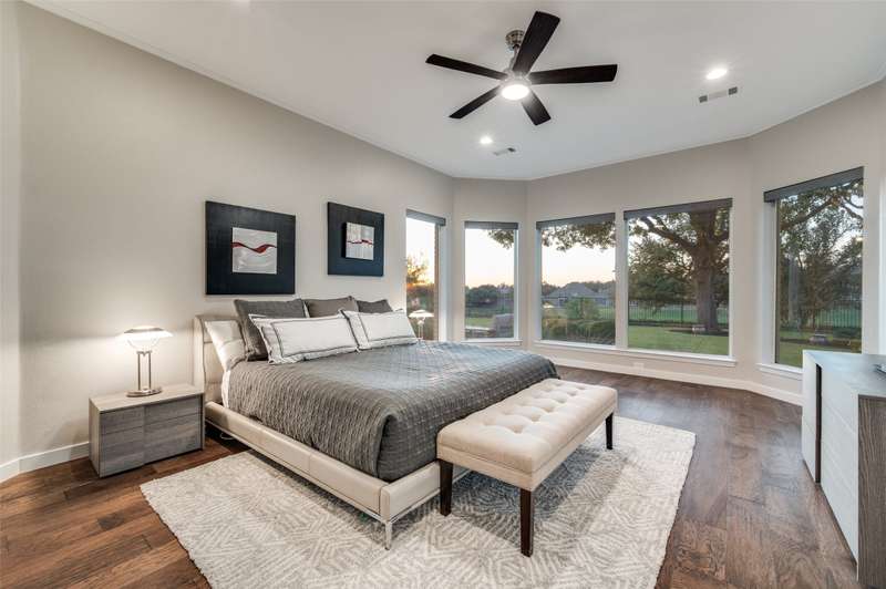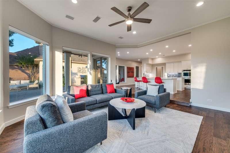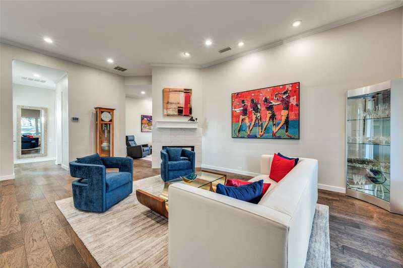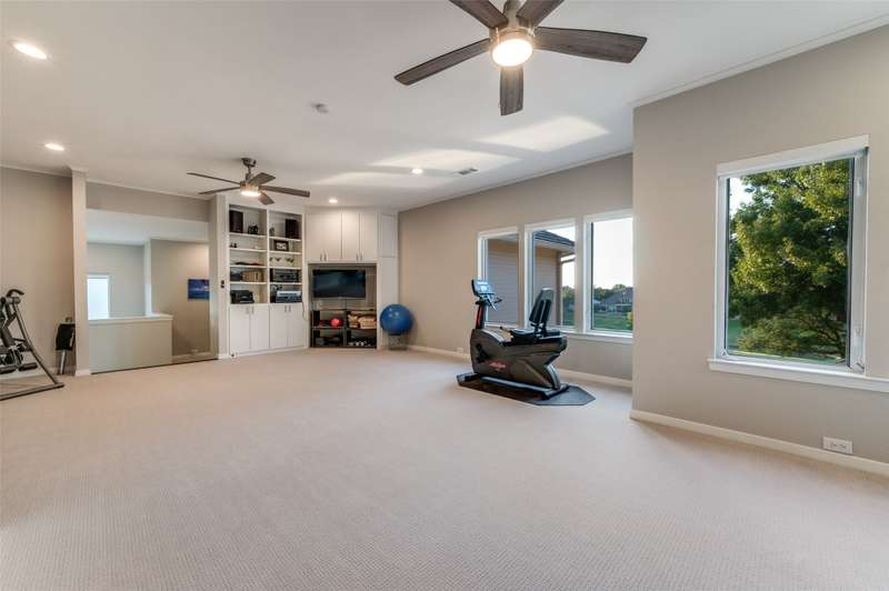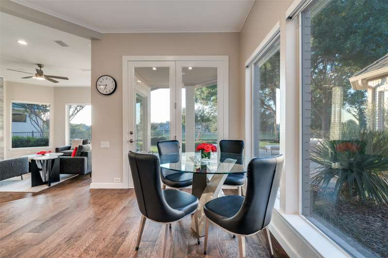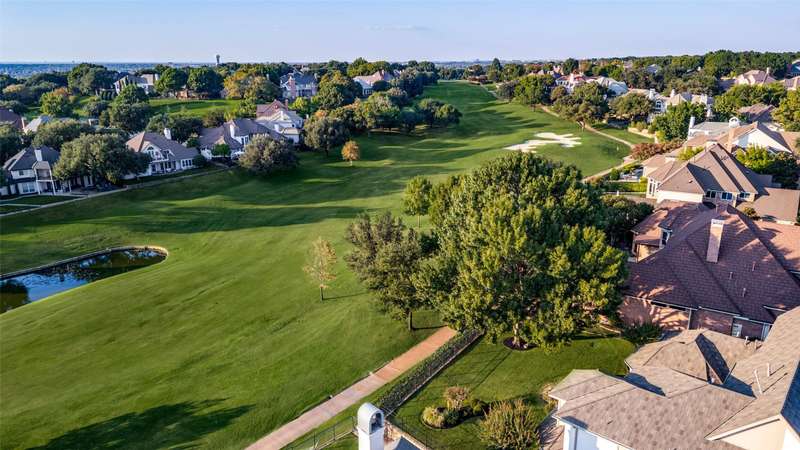 This beautifully updated residence in resort style guard-gated Stonebriar Village enjoys an elevated, oversized corner lot w-sweeping panoramic views of a private lake & the 16th fairway of Stonebriar Country Club. Thoughtfully remodeled w-over $255,000 in recent upgrades, the home offers light-filled living space w-newly installed wood floors~fresh paint & walls of windows that frame golf course & sunset vistas. The gracious entry opens to a formal dining room & a living area w-a see-through fp that also serves the study. Both rooms were recently enhanced w-new custom cabinetry~porcelain fireplace surrounds & modern lighting. The well-designed gourmet kitchen features new shaker cabinetry~quartz waterfall ctops~porcelain backsplash~top-tier Wolf & Dacor appl incl: Wolf induction cktp w-downdraft~flowing seamlessly into the breakfast area & family rm where a wall of windows highlights the outstanding views. The first-floor primary suite is a serene retreat w~a sitting area & spa-like bath, renovated w-a freestanding tub~porcelain tile shower~dual quartz vanities~custom WI closet. Upstairs, three spacious bdrms are joined by a game rm & two flexible bonus rms that can serve as media~fitness~studio or an addt'l bdrm. Outdoors, mature oaks shade the pool-sized bkyrd, complemented by freshly painted exterior brick~a built-in grill and a covered patio. The rare oversized four-car garage is pristine & offers abundant storage. Smart home features incl: Hunter Douglas Powerview programmable shades~Wi-Fi-enabled locks & garage doors as well as a Moen Flo water monitoring system. Addt'l improvements: two new HVAC systems w-Wi-Fi thermostats~new stair railings~a Decra Class IV impact-resistant roof w~transferable warranty. Perfectly positioned in the heart of Frisco, this residence combines elegant design~modern updates & unrivaled golf course views, all just minutes from The Star~Legacy West~world-class shopping~dining~entertainment~sporting events & DFW airports.