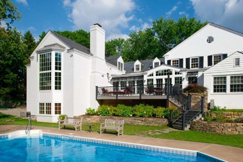 This turn of the century home overshadows anything on the market. Beyond the large entry you will experience the expansive great rm w/ walls of windows that bring the relief of mother nature at every turn. A stone raised hearth fireplace, custom built-ins, cloak room, adjacent full bath, & access to a deck complete this gem of a room. Wander into the kitchen with abundant counter space & cabinetry, open area for a large table, two sinks, back staircase, & a pantry that defies the ordinary. The dining room has character all its own with corner builtins, & flows into the solarium, living rm, & entry area with staircase to the second floor. Also a den w/ powder rm. 5 bedrooms, 4 full baths. office area, & lg laundry rm comprise the second floor. Access from outside the pool area to a changing room w/ full bath. Basement is basically just for storage. Second structure has two stalls below, half bath, & finished room above including 2 car garage. 5.5 acres. Paradise awaits