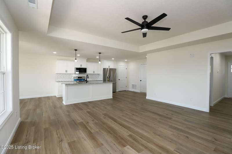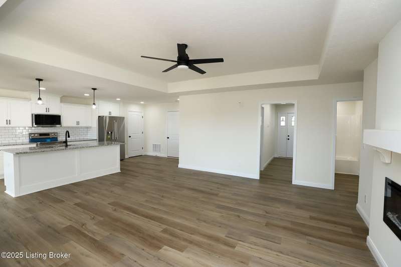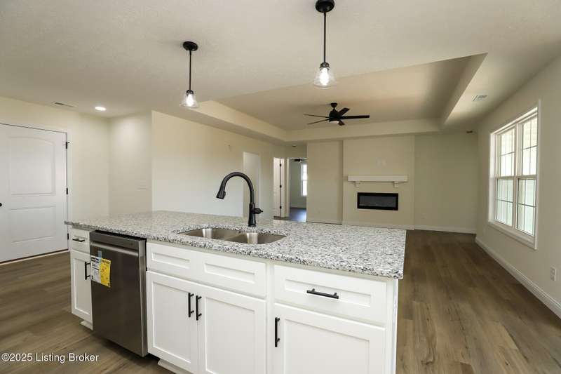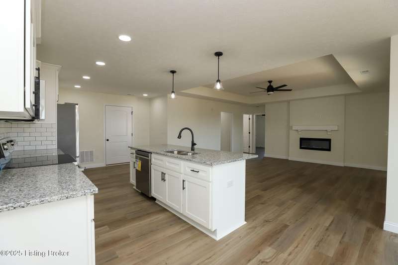 **Stunning Contemporary Home with an Open Concept Design** New construction! This beautifully crafted home offers an inviting open concept, split bedroom floor plan that effortlessly marries style and function. Bathed in natural light from generous windows throughout, every corner of this residence radiates warmth and welcomes you inside. As you enter, you'll be greeted by a spacious foyer leading into the heart of the home — a large great room with a fireplace and a kitchen designed for both culinary delights and entertaining. Featuring granite countertops, contemporary black fixtures, a tile back splash, an island, pantry and a full appliance package. The split bedroom layout ensures privacy for both owners and guests alike. The master suite serves as your personal sanctuary, complete with ample closet space and an en-suite bath that promises relaxation after a long day. Two additional bedrooms are thoughtfully positioned on the opposite side of the home, along with another full bathroom. Accessibility is key in this residence with no steps at the entrances making it ideal for all ages and lifestyles. This well laid out home also features luxury vinyl flooring throughout, a private covered back patio and a 2-car garage. Schedule your viewing today!