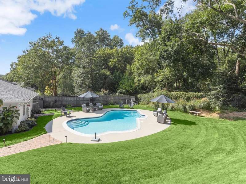 Beautiful brick rancher in the Valleybrook community offers a rare combination of thoughtful updates, spacious living, and a nearly half-acre lot with a resort-style backyard that backs to a serene conservation area. The home's well-maintained exterior and inviting curb appeal set the stage for what lies inside. Step into the living room, where hardwood flooring flows seamlessly through much of the main level. Three large windows frame views of the lush front yard, while a cozy fireplace anchors the space. The living room opens to a dining room and renovated kitchen, complete with granite counters, to-ceiling cabinetry with display cabinets, stainless steel appliances including a gas range, and a window above the sink that overlooks the backyard and pool- a truly idyllic setting. Between the living room and kitchen, the dining room is accented with chair railing and an updated light fixture, flowing naturally into the sunroom, perfect for relaxation or quiet reading. The main level includes three bedrooms, highlighted by a primary suite with a renovated bath featuring a marble tile wall surround and marble shower. Two additional bedrooms share a full hall bath with a stylish new vanity, and many closets throughout the home include built-in organizers for convenience and efficiency. The expansive lower-level family room offers direct access to the backyard and is accompanied by a fourth bedroom and half bath with an updated vanity. From here, the garage, laundry room, and driveway are easily accessible, providing functional everyday living. Outdoors, the backyard is a private oasis with a sparkling pool, paver walkways and patios, and ample green space shaded by mature trees, including a blooming dogwood, creating a sense of tranquility and retreat. The location combines suburban comfort with convenient access to Silver Spring's amenities. Residents enjoy nearby shopping centers, while outdoor enthusiasts can explore Brookside Gardens and Wheaton Regional Park with walking trails, sports facilities, and open green spaces. Commuters benefit from easy access to major thoroughfares including New Hampshire Avenue (MD 650), Colesville Road (US 29), I-495, and I-95, connecting quickly to downtown Silver Spring, Washington, D.C., Baltimore, and beyond.