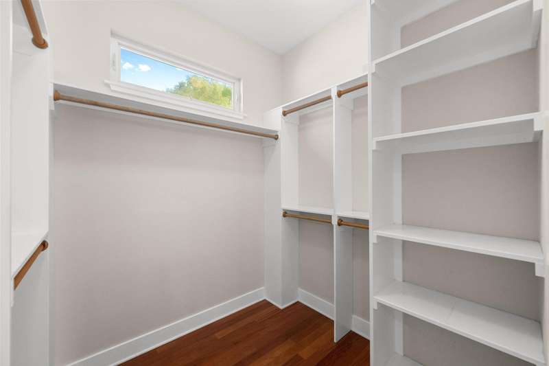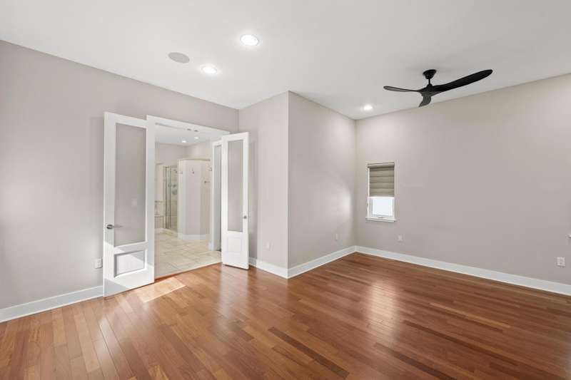 Upstairs, the private primary suite provides a retreat with hardwood floors, a spacious bath, and lots of natural light.