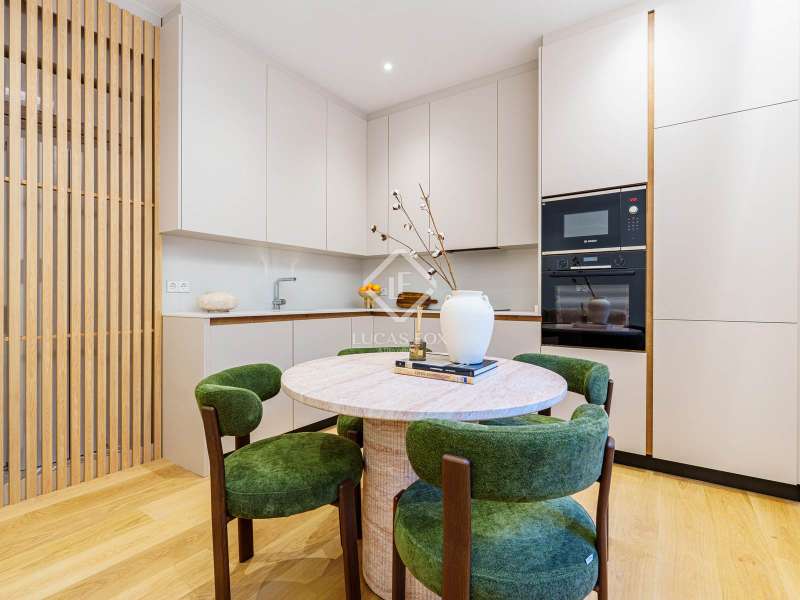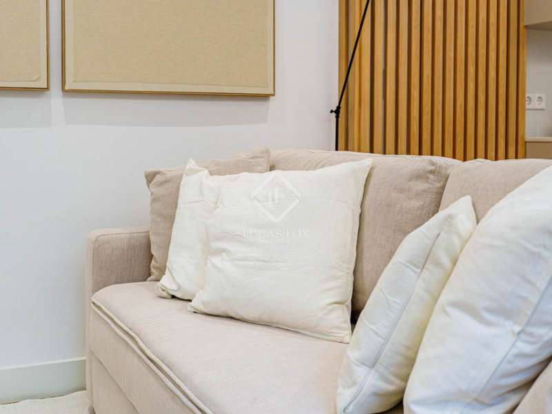 Lucas Fox presents this renovated 79 m² apartment in the best area of Lista, in an unbeatable location on one of the main streets of Madrid's elegant Salamanca district , very close to the Plaza del Marqués de Salamanca. The property is located on the first floor of a stately and representative building dating from 1930. The property is distributed in a living area consisting of a spacious living-dining room with excellent natural light, thanks to the height of the property and its two large balconies, with a large open kitchen fully furnished and equipped with top-brand appliances . The bedroom area comprises two bedrooms, one with an en-private bathroom and dressing area, both with large windows. The property also includes a second bathroom. It's worth mentioning the quality of the renovation carried out by a leading architecture firm. The property is being sold furnished and decorated by a prestigious interior design studio. Please contact us for more information.