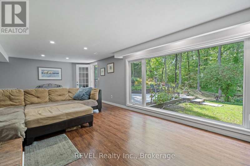 Welcome to St. Catharines hottest new listing! If you're looking for an inner-city property with a Muskoka / forest-like setting, this is it. Backing onto a natural stream, this expansively landscaped lot features a large concrete patio and stunning balcony perfect for enjoying nature year-round. Inside, you'll find a spacious 3 + 2 bedroom, 3 bathroom bungalow with a skylight on the main level and a walk-out basement. Large floor to ceiling windows and 6-foot sliding doors flood the home with natural light, seamlessly blending indoor and outdoor living. The functional floor plan is designed for both comfort and style, making it ideal for families or those who love to entertain. Ideally located close to top schools such as Ridley College, Brock University, and Niagara College, this home is also encompassed by mountain bike trails, hiking paths along the Bruce Trail, and numerous parks making it a perfect balance of city living and outdoor adventure.This is truly a show stopper and informed buyers will act fast on this rare opportunity. (id:7434)