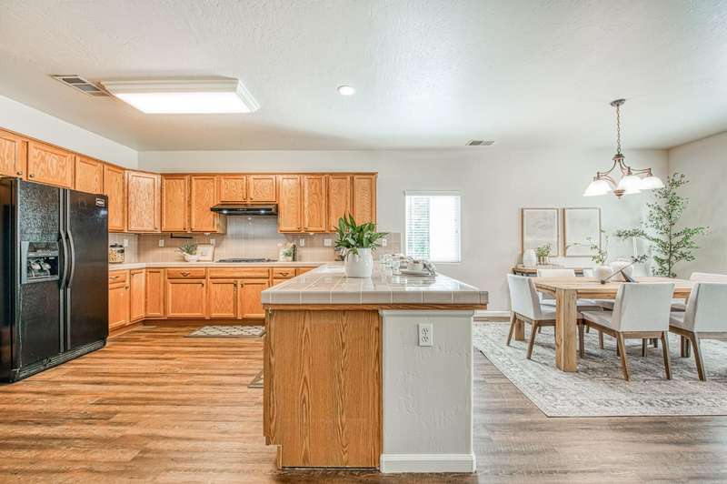 This beautifully maintained single-story home offers a bright, open floor plan in a highly desirable neighborhood within the award-winning Clovis School District. The spacious kitchen features a gas cook top, breakfast bar, and large dining area that flows seamlessly into the family room with a cozy gas fireplace perfect for entertaining or relaxing evenings at home. In addition to three well-appointed bedrooms, this home includes a versatile flex room/office and a separate small computer room ideal for work, study, or hobbies. The large backyard is beautifully landscaped with mature trees and a generous covered patio for outdoor dining or gatherings. With newer flooring throughout and a spacious lot, this home is move-in ready and designed for comfortable, flexible living.