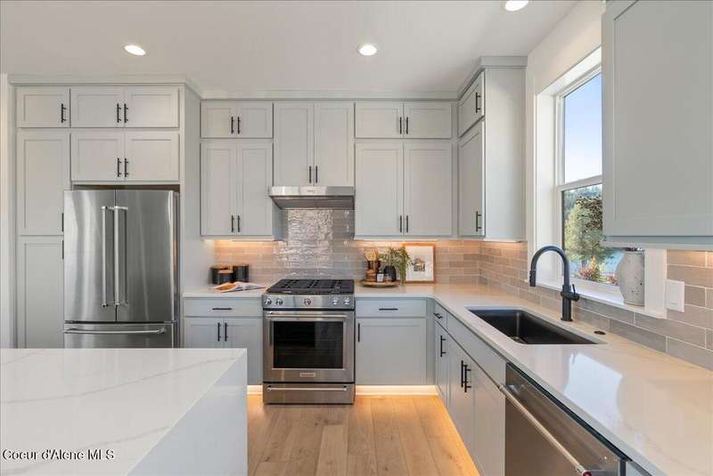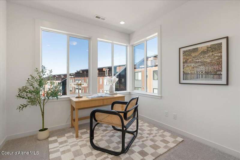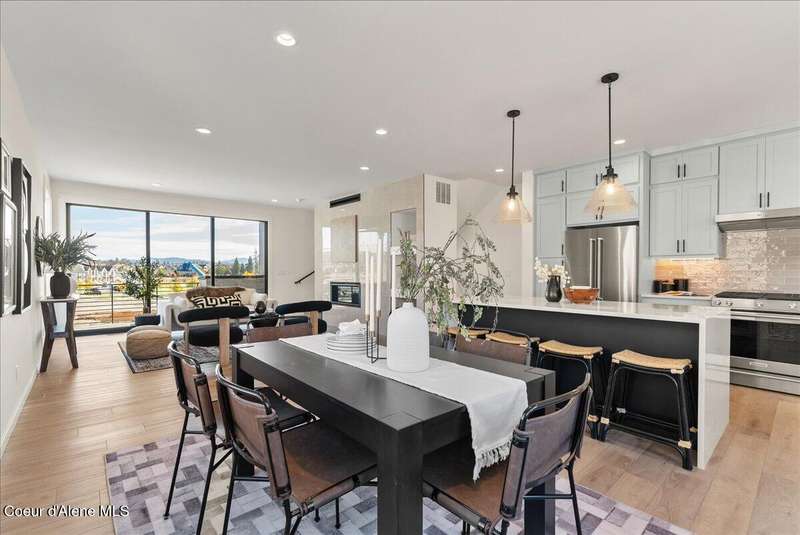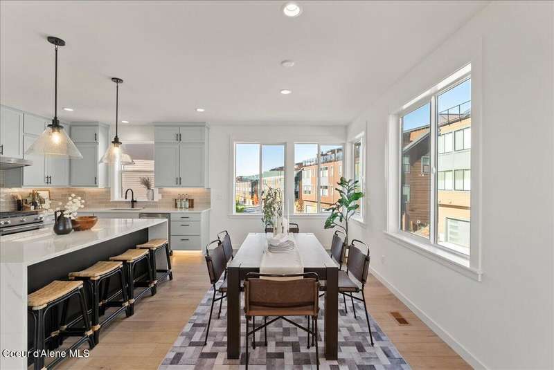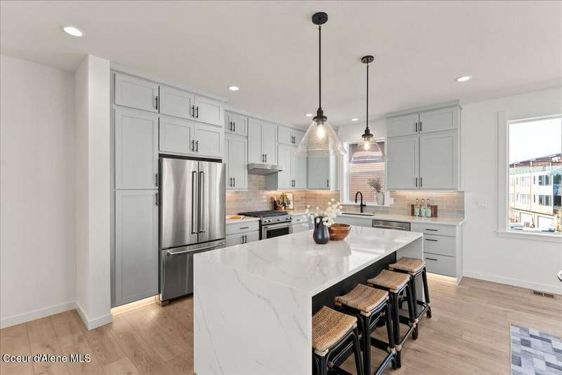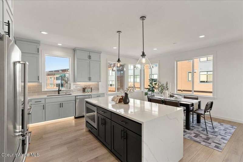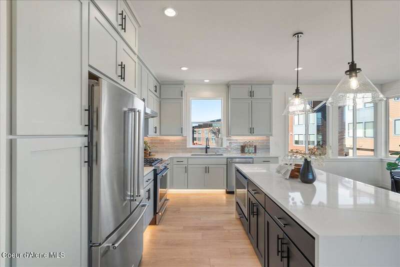 Experience exceptional living in the Atlas Waterfront Carlin Elite home plan. Homes features open-concept great room with expansive views. Bask in the extraordinary waterfront sunsets from your covered balcony overlooking the Spokane river. Kitchen features elegant appointments including a spacious center island with eating bar and Kitchen Aid appliances. Secluded on the third floor, the primary bedroom suite is complemented by serene spa-like primary bath complete with dual-sink vanity, large shower, and a private water closet. An additional bedroom found off the foyer offers a private bath. The Carlin also includes a convenient everyday entry with drop zone. Photos are of the model home. File Photo.