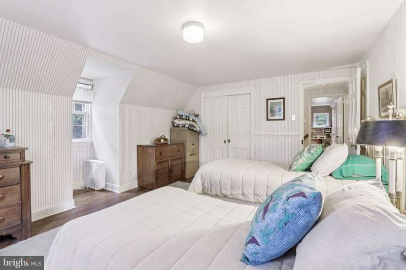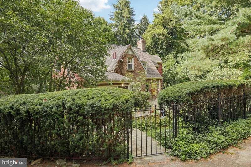 On the market for the first time in nearly 30 years, this classic Chestnut Hill residence is a rare opportunity in an idyllic setting just steps from Fairmount Park. Tucked away in the woods and nestled behind a beautifully landscaped garden courtyard, the home blends timeless architecture with versatile living spaces in a location that offers both privacy and convenience. The main level opens with a gracious entry hall and wide-plank hardwood floors that extend throughout much of the home. At its heart is an expansive, high-ceiling grand room-the first half of a thoughtful two-story addition-designed for gathering, with a wood-burning fireplace, tall windows, and French doors leading to the courtyard. A stately dining room, breakfast nook, and compact yet efficient kitchen provide wonderful natural light and serene views from nearly every angle. With six separate doors opening to the outdoors, this home seamlessly connects the interior to its natural surroundings, creating a rare sense of peace and flow. Also on the first floor is a flexible suite with a full bathroom, ideal as a den, fourth bedroom, or guest quarters, along with a convenient laundry closet. Upstairs, the primary suite, forming the second half of the addition, features refinished floors, generous closet space, and a full bathroom. The other two spacious bedrooms flank a bathroom and a convenient second staircase. Outdoors, the private courtyard retreat is framed by lush plantings, with space for both quiet mornings and evening barbecues and outdoor dining. Just beyond the garden, Fairmount Park offers endless opportunities for recreation, while the shops and restaurants and convenience of Germantown Avenue are moments away. Lovingly maintained and thoughtfully expanded, this home offers a unique combination of character, livability, and location. Properties of this quality and setting rarely come to market-an exceptional opportunity not to be missed.