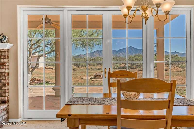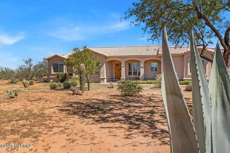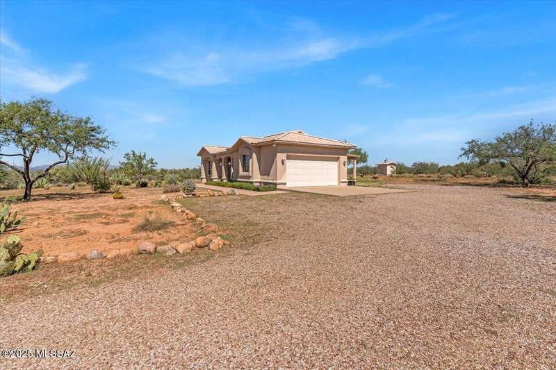 USDA ELIGIBLE! Discover your own desert oasis tucked away in scenic Cottonwood Canyon, nestled in the peaceful mountains of Tubac, AZ. Set on an expansive, tranquil lot with panoramic mountain views, this home is a true retreat from the everyday rush while still offering easy access to everything you need. Built with Insulated Concrete Forms (Rastra), this modern home delivers exceptional energy efficiency, durability, and year-round comfort. Featuring 3 bedrooms, 2 baths, and an optional den or home office, every window frames stunning desert and mountain vistas. Enjoy the freedom of a private well, plus a 720 sq. ft. workshop (no electric), tool shed, and pump house, ideal for hobbyists or anyone who loves wide-open space.