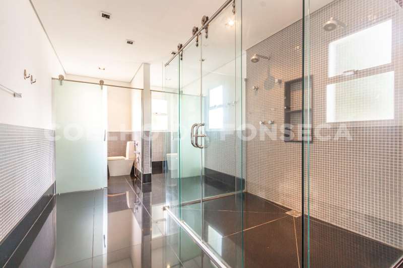 Piso superior com 4 excelentes suítes com persianas elétricas, sendo a master com sala de banho com duas duchas e closet.