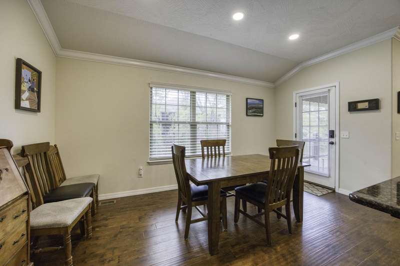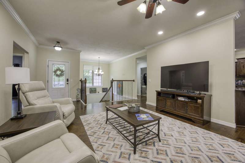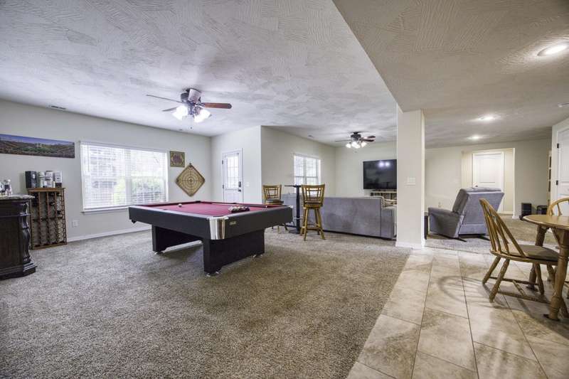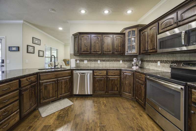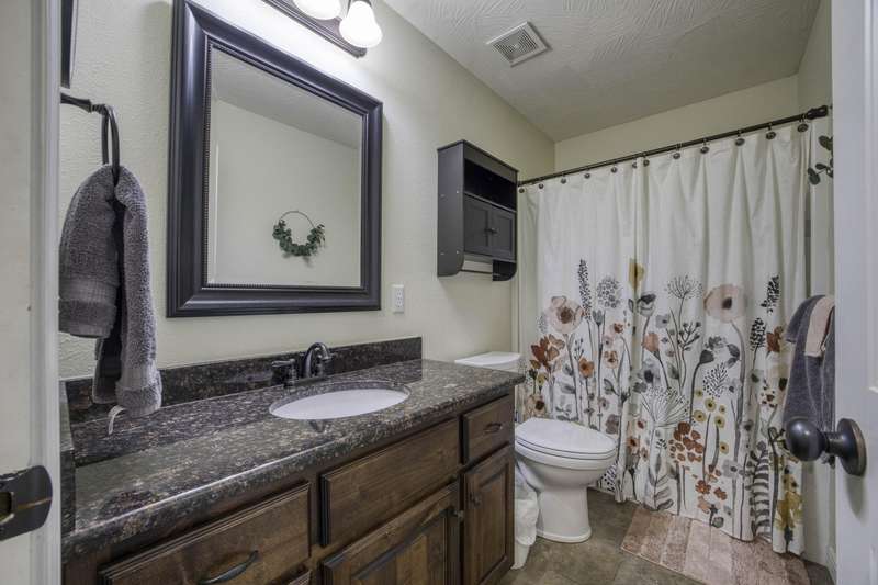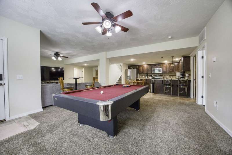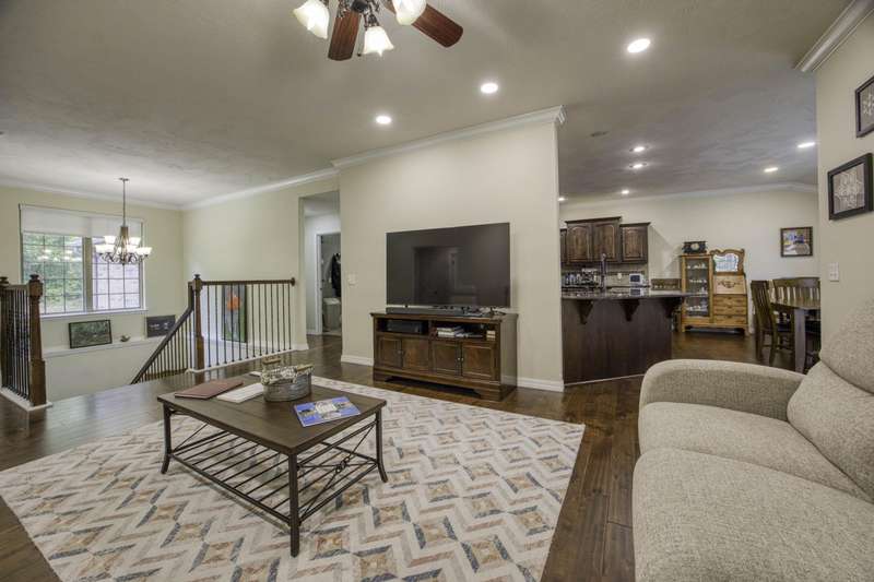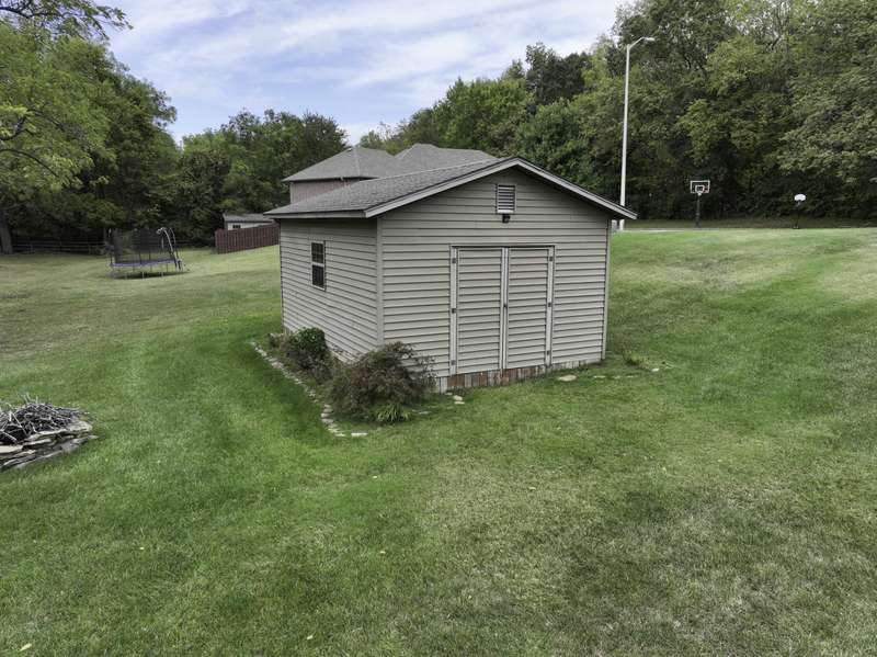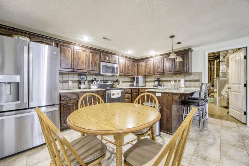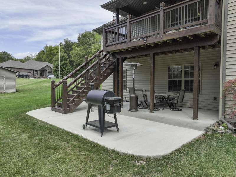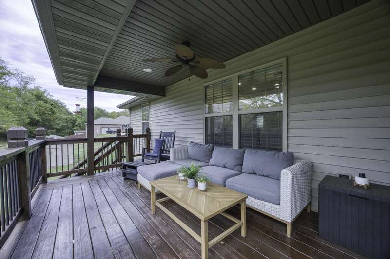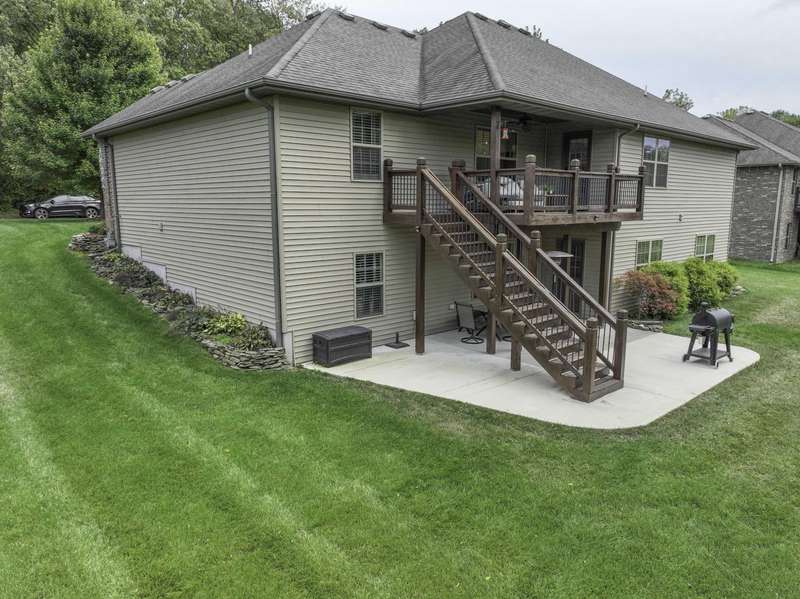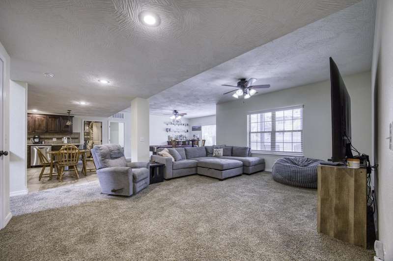 Open Sun Sept 28,2025 from 2:00 - 4:00. Built in 2014, lovingly maintained and in ''like new'' condition. Appr 4018 sq ft that includes (2) full kitchens/including appliances/ (2) laundry areas, (2) HVAC systems AND built upon double lots.The main level is 1994 sq ft, floored in engineered hardwood and tile. Tall ceilings welcome you blended with stained cabinetry, ''tremendous'' amount of cabinetry, an amazing tiled, walk-in shower in the master bedroom and a spacious covered deck! 5 bedrooms, (plus an office), 3 baths, 3 car garage, storm shelter, 2 Full kitchens , split bedroom plan on ea level, 2 areas of living space in the walkout basement..a patio on the lower level, detached storage bldg and this incredible package is wrapped with low-maintenance landscaping! Irrigation system included and previous owners had an 'invisible pet fence' installed. Appliances include the refrigerators, are stainless steel GE, sellers plan to leave the pool table and accessories .