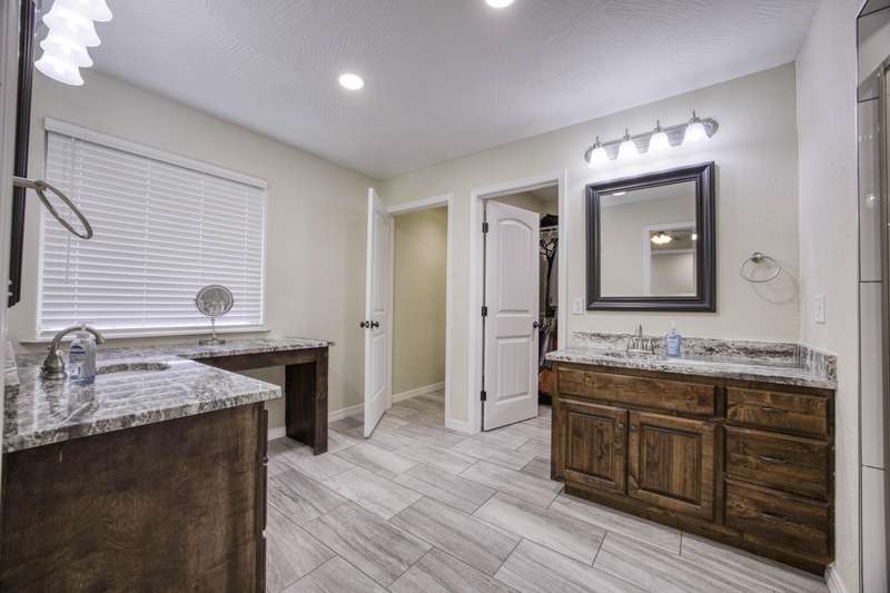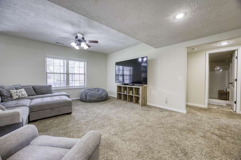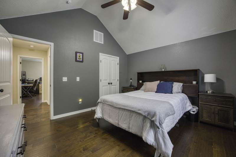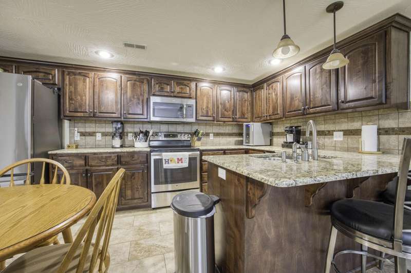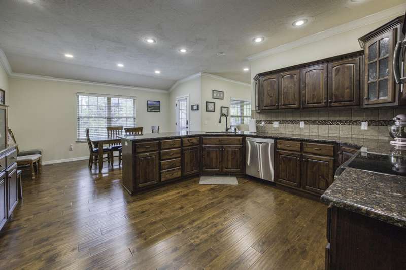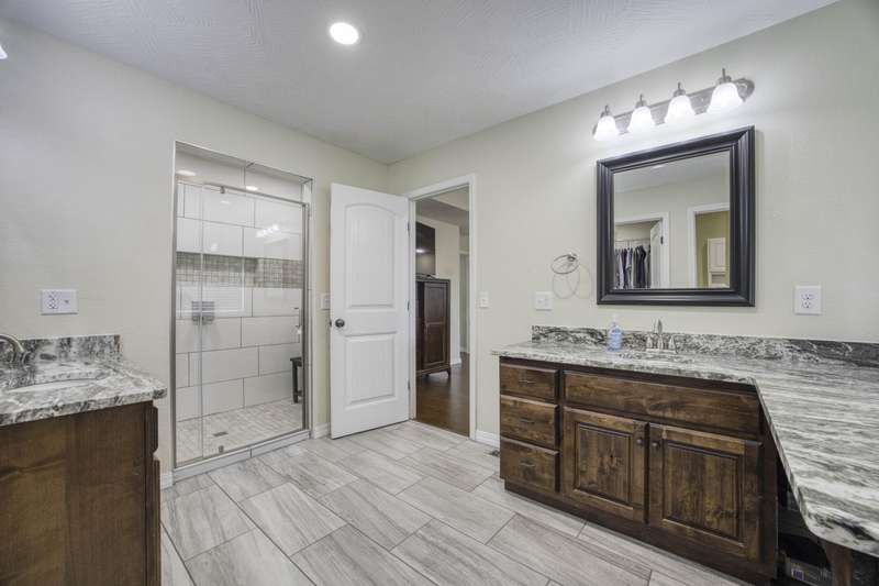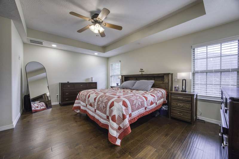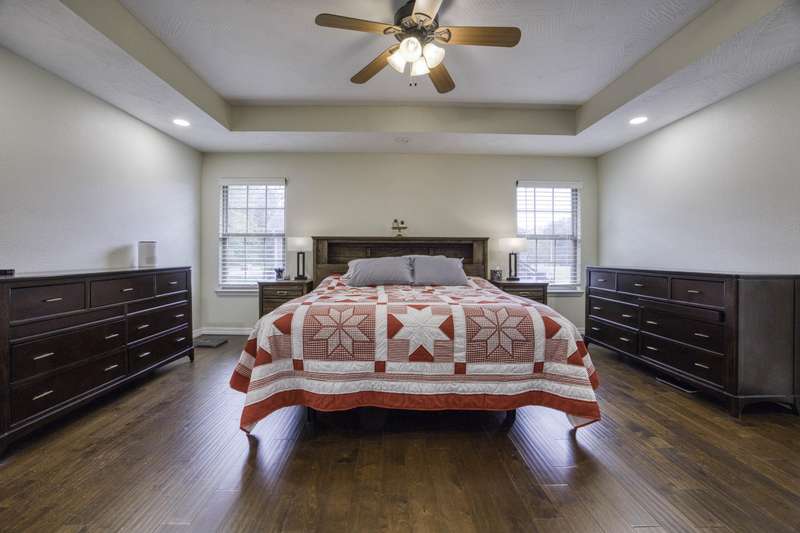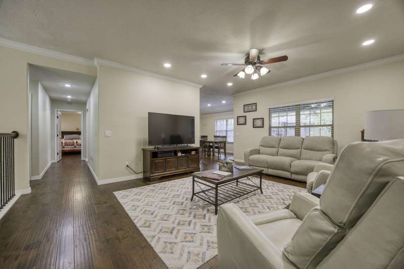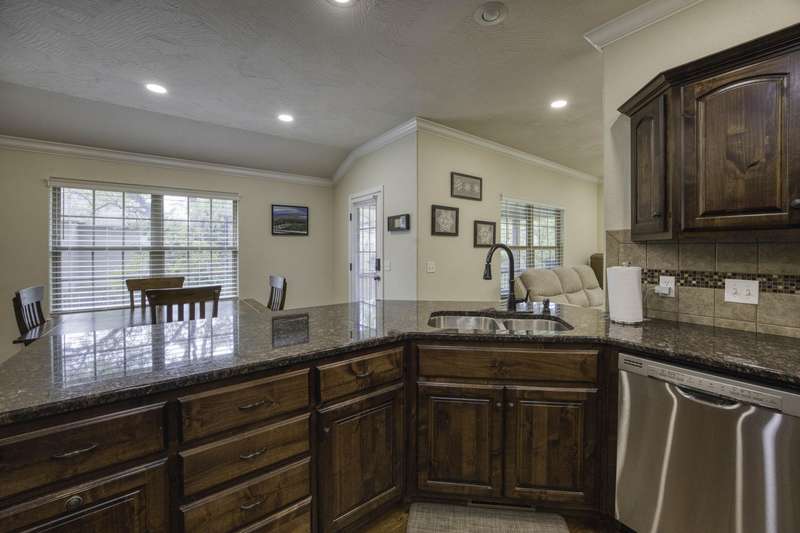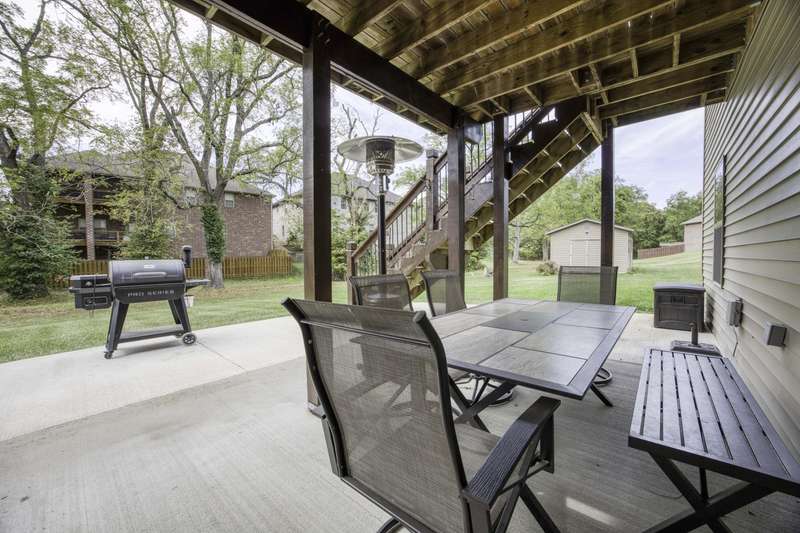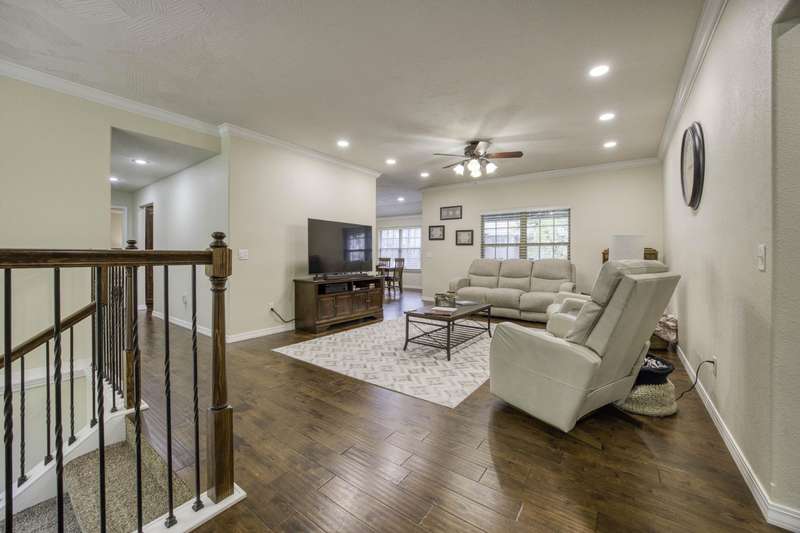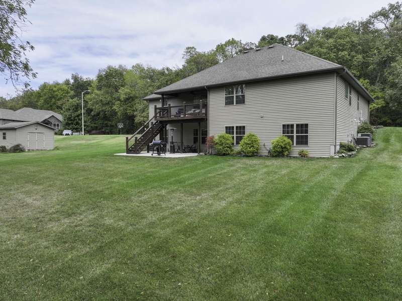 Open Sun Sept 28,2025 from 2:00 - 4:00. Built in 2014, lovingly maintained and in ''like new'' condition. Appr 4018 sq ft that includes (2) full kitchens/including appliances/ (2) laundry areas, (2) HVAC systems AND built upon double lots.The main level is 1994 sq ft, floored in engineered hardwood and tile. Tall ceilings welcome you blended with stained cabinetry, ''tremendous'' amount of cabinetry, an amazing tiled, walk-in shower in the master bedroom and a spacious covered deck! 5 bedrooms, (plus an office), 3 baths, 3 car garage, storm shelter, 2 Full kitchens , split bedroom plan on ea level, 2 areas of living space in the walkout basement..a patio on the lower level, detached storage bldg and this incredible package is wrapped with low-maintenance landscaping! Irrigation system included and previous owners had an 'invisible pet fence' installed. Appliances include the refrigerators, are stainless steel GE, sellers plan to leave the pool table and accessories .