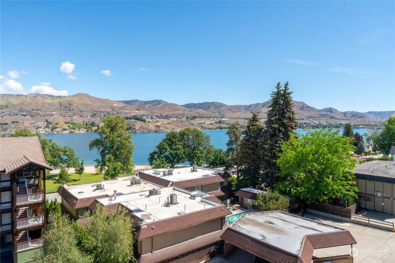Chelan Resort Suites, top floor condo, the one you are waiting for, with expansive territorial views of mountains and of Lake Chelan. Remodeled condo, 4 years ago, with fully stocked kitchen to make it easy for you and your guests to enjoy. Vaulted ceiling gives a feeling of size in the comfortable floor plan. We love this location, close to the beautiful Lakeside Park for lake access, close to all the Lake Chelan South Shore wineries, and you will find a number of recreational opportunities the Lake Chelan Valley has to offer. Condo has been used as a successful vacation rental. This condo is fully furnished and ownership includes covered private parking and community indoor pool. A beautiful setting to enjoy your special Chelan getaways!