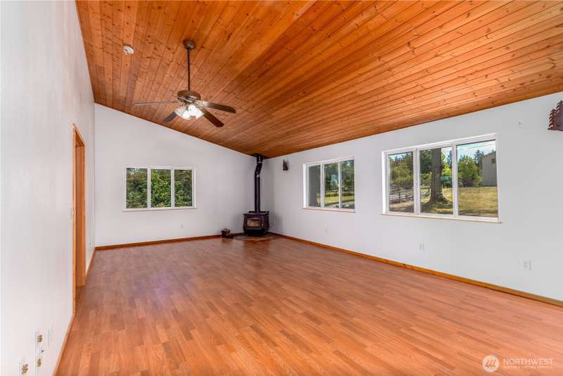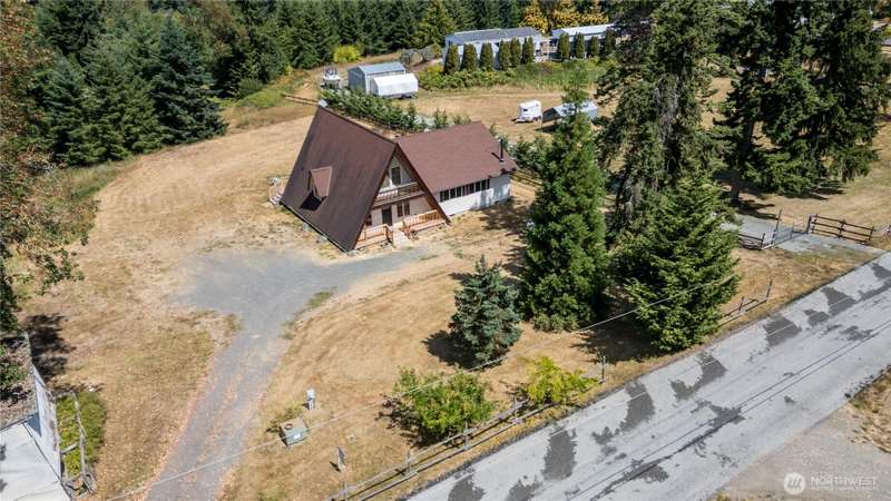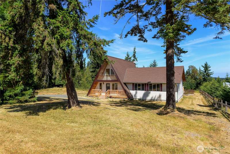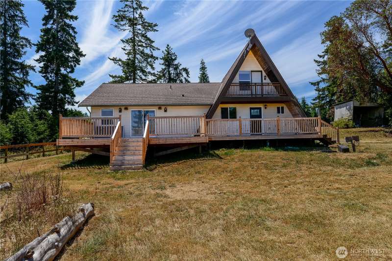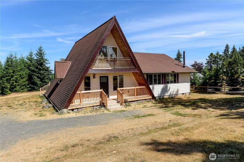 HUGE PRICE REDUCTION on this cute mini-farm! Conveniently located between Sequim and PA, this move-in ready 3 bed, 2 bath home is open, airy and bright. Huge living room is perfect blend of comfort and cozy. Open concept kitchen with breakfast bar. Vaulted ceilings on the main floor lead up to the loft area bedroom with its own private balcony! Primary bedroom has walk in closet and private entrance to spacious back deck. Wood stove in expansive living room to keep everything warm and toasty in the cold months. New front and back decks make for widespread entertaining areas. Tons of space for gardening or animals. Sitting on approximately 2.5 acres with a large pasture area and pond, this could be a perfect mini-farm. No HOA or CC&R's.