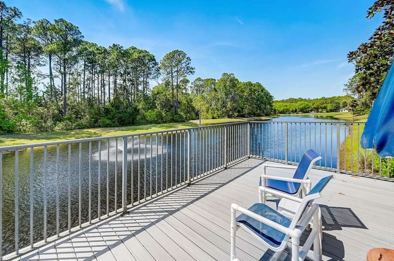 SPOTLESS 3BR/2BA END UNIT FULLY FURNISHED & SHOWS LIKE A MODEL AT BELLE HAVEN, a beautifully landscaped, gated community in very convenient location! Spacious open floor plan end unit with 1,520 sq.ft. offers additional privacy and extra windows for plenty of light. Super nice furniture & furnishings convey with this condo, if needed. Huge kitchen with lots of counters, cabinets & walk in pantry. Enormous dining room and living room lead to 14 ft screened porch that has its own private entrance. Huge owner suite with large walk in closet & bathroom with double vanities & walk in shower. Split bedroom plan has 2 more bedrooms on other end of condo. Utility room just off large 7x11 foyer. Lots of closet & storage space. Community clubhouse includes pool & fitness center offering lots of community activities. Clubhouse sits on a serene, peaceful, gorgeous lake. 4 minutes to Publix shopping center; 10 minutes to Crescent Beach & 15 minutes to historic downtown.