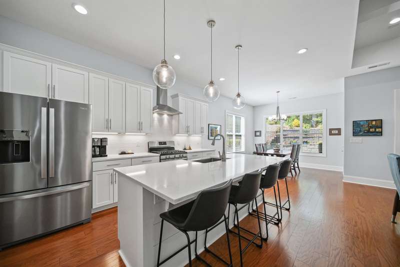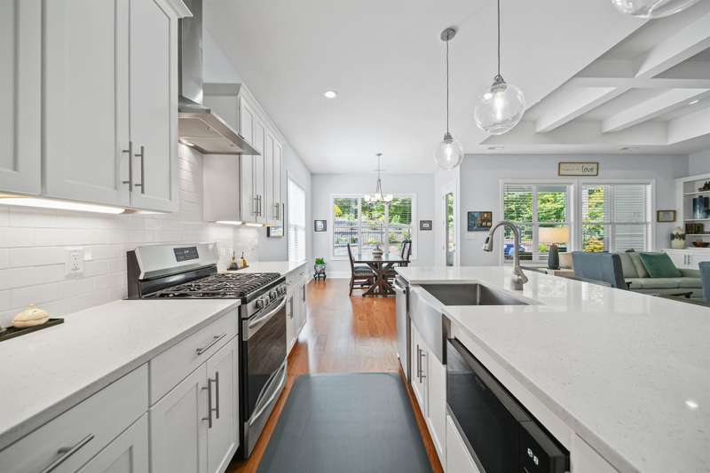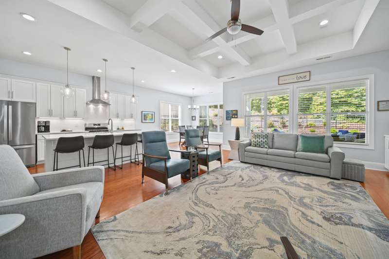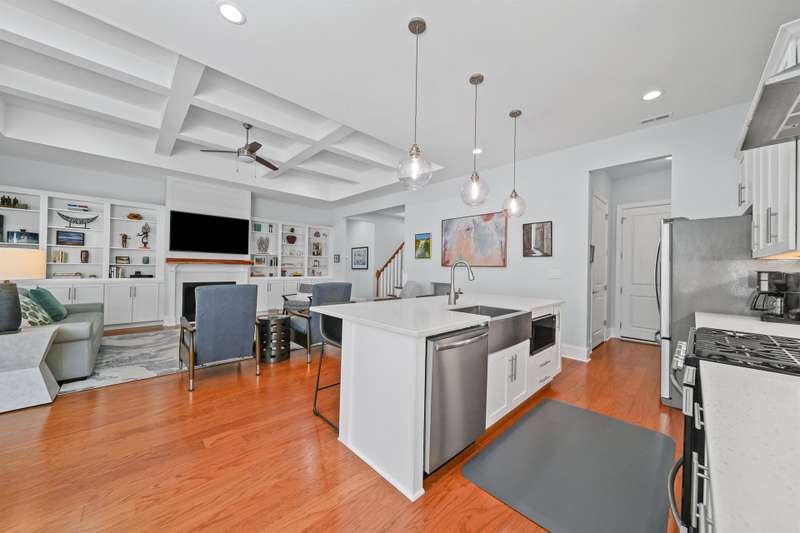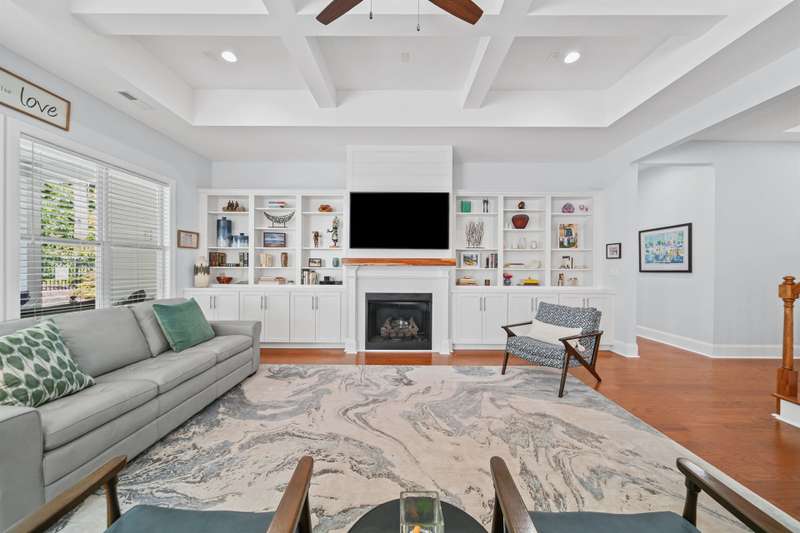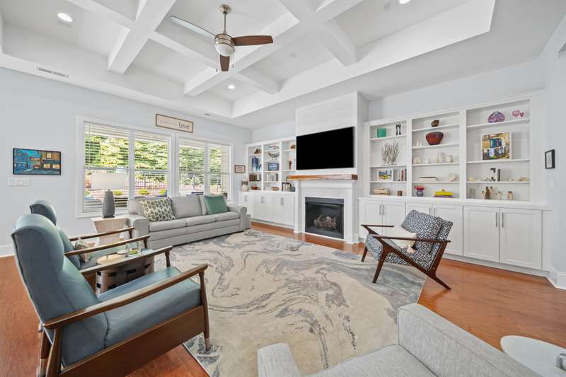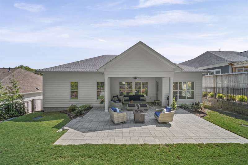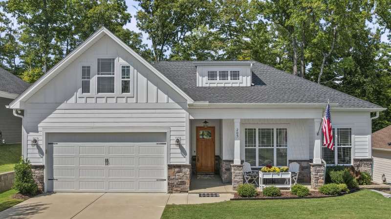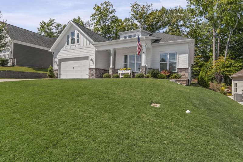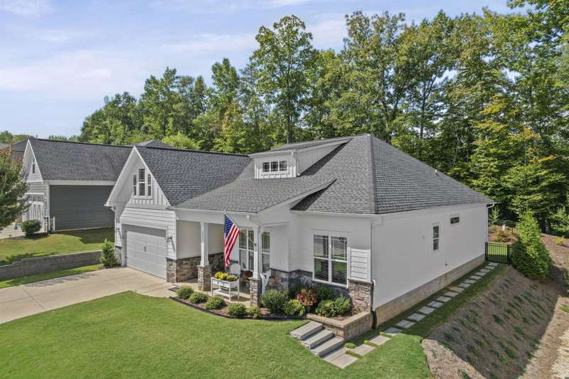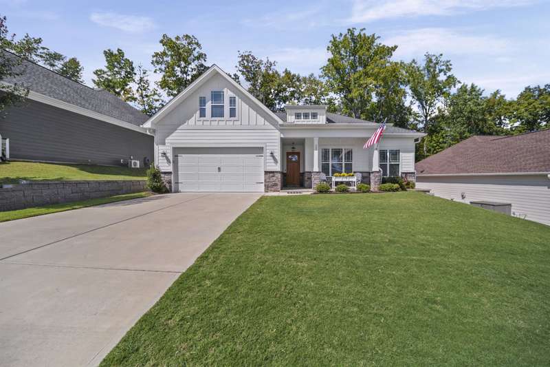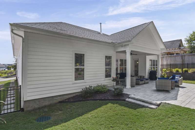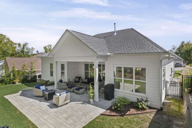 This custom built home with open floorplan overlooks the Cramer Mountain golf course on hole number 4. The home offers high end finishes, quartz countertops, tile backsplash, custom cabinets, wood flooring, upgraded lighting, custom closet system, wooden front door and more! Spacious primary suite, with wonderfully spacious custom closet. Kitchen open to great room with coffered ceiling and fireplace. Outdoor living space will draw you toward the golf course. Covered back patio with extended area for firepit or dining. Professionally landscaped fenced backyard. Cramerton is a golf cart friendly town with all the small town charm you're looking for, but just minutes from hospitals I-85 and Charlotte Douglas Airport. Cramer Mountain Club has memberships available if the buyer is interested in golf, tennis & social opportunities. See listing agent for details and refer to Cramermountainclub.org for more information.