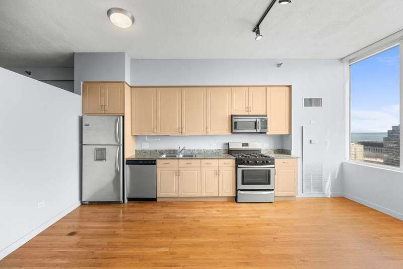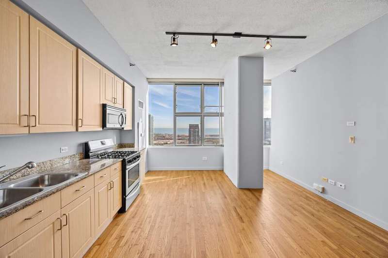 1 bedroom /1 bathroom in Desirable South Loop condo in 24-hour doorman high-rise building. Enjoy spectacular, unobstructed, east views of Lake Michigan and the city skyline from this spacious concrete loft. The property features high ceilings, hardwood floors, and an open-concept layout perfect for modern living. The updated kitchen offers stainless-steel appliances granite countertops, and a brand-new dishwasher. The bathroom has been updated with a large walk-in shower. Convenient stackable washer and dryer in-unit with great closet space. Space for table or desk in the living room. Outdoor parking included in the rental price. Experience the best of South Loop living-just a short walk to the lakefront, Bears games, EL, Grant Park, top-rated restaurants, shopping, and public transit. No PETS PLEASE. ALSO AVAILABLE FOR SALE.
