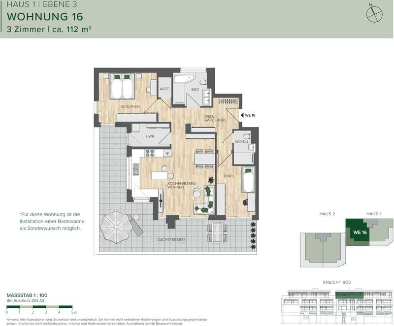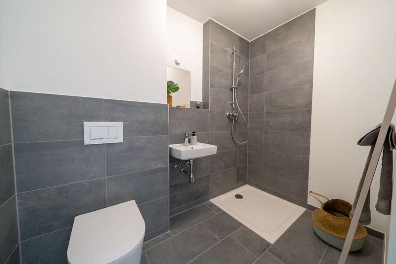 Are you looking for a comfortable and very modern apartment? With a balcony or terrace, a modern layout and an open-plan living/dining/kitchen? Would you also like the convenience of an elevator to all levels of the apartment building and a carport or garage with a possible e-charging station? - Then you've come to the right place! In Blumberg, with its proximity to Switzerland, an exclusive residential building is currently being built to a high standard, with a total of 17 residential units spread over 2 entrances. The new building is expected to be ready for occupancy in March 2025 and offers energy-efficient living for singles, couples or families! Key data for this new-build apartment on offer: * Penthouse, level 3 * 3 rooms * approx. 127 sqm living space, with 2 balconies (approx. 31 sqm + 29 sqm) * 2 bathrooms The heart of the penthouse apartment is the open kitchen area, which is equipped with modern appliances and flows seamlessly into the living and dining area. Floor-to-ceiling windows bathe the rooms in pleasant daylight. The windows are fitted with electric blinds made of aluminum slats, which allow you to flexibly regulate the amount of light coming in. The sliding doors provide access to the beautiful wrap-around roof terrace, which faces south-west and is laid with natural stone slabs. It offers you plenty of valuable outdoor space to enjoy the fresh air and sunshine. The other rooms in the apartment are also brightly decorated and have electric plastic shutters. The modern bathrooms are fitted with high-quality, large tiles and a low-threshold shower tray. The real glass shower cubicle provides additional comfort. The underfloor heating provides even and pleasant heat distribution throughout the apartment. The floor is laid with fine real wood parquet, which lends the room a natural elegance. Another highlight of this property is the high energy standard (KfW 55 EE), which is achieved through the use of solar thermal energy and an air heat pump. An additional boiler is used at peak times. This energy source not only reduces your ecological footprint, but also the operating costs of the apartment. In terms of technology, the apartment is state-of-the-art and offers connections for broadband cable and fiber optics. There are also connection options for wall boxes, which enable electric vehicles to be charged. The location of the apartment offers a very good infrastructure with shopping facilities in the immediate vicinity, public transport connections and leisure facilities nearby. Overall, this new-build apartment not only offers a cozy home, but also the comfort and technical standards that meet modern and exclusive living requirements. Viewings are possible at any time by appointment. See the qualities of this attractive property for yourself! Your VON POLL real estate team in Villingen-Schwenningen