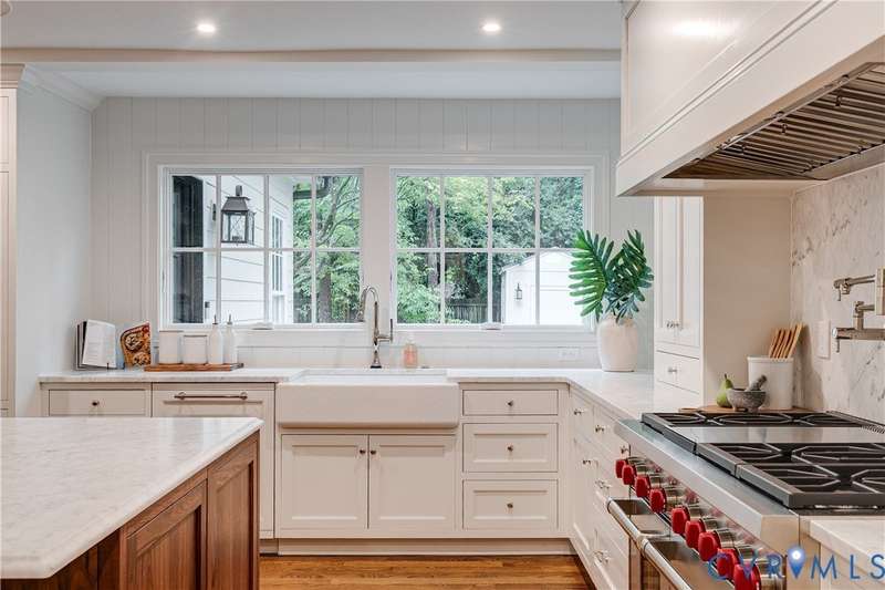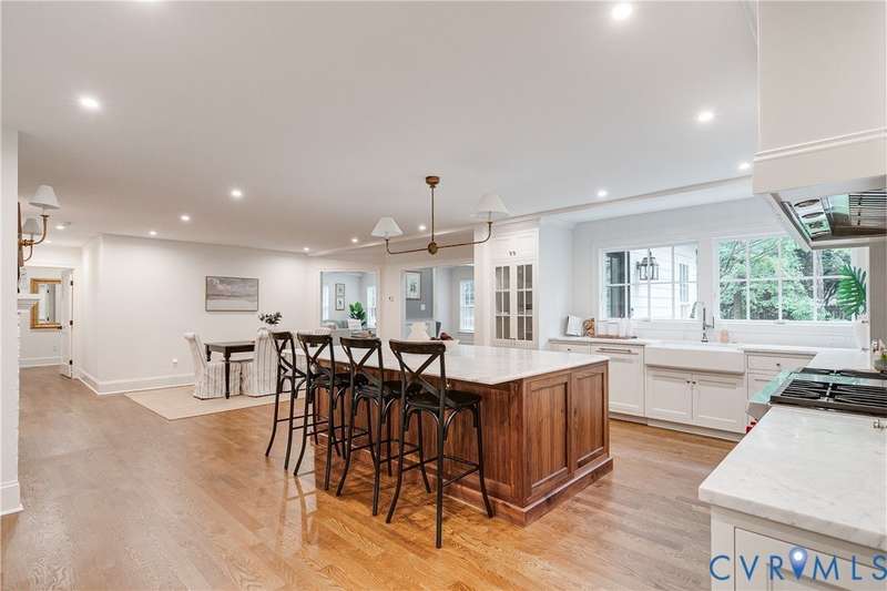 This stunning, newly renovated Colonial home, expanded and meticulously crafted by Spruce Construction in 2024, offers a possible 6 spacious bedrooms and 5 1/2 luxurious baths. Boasting high-end finishes throughout, the open concept eat-in kitchen is a chef's dream, featuring a large walnut center island, Sub-Zero refrigerator, Wolf range, marble countertops, and custom inset cabinetry. The expansive family room is anchored by an oversized wood-burning fireplace, while the walnut wet bar with Sub-Zero wine fridge is perfect for entertaining. A large butler's pantry offers abundant storage. A bright living room with picture molding adds elegance, and the spacious dining room with vaulted ceiling is open to the family room for great entertaining flow. The separate side entrance leads to a mudroom with custom cubbies, and a first-floor laundry with inset cabinetry provides convenience. There is a first floor private office, which is great for working from home. The private first-floor primary suite is a true retreat, featuring a vaulted ceiling with shiplap beams, a spa-like marble bath with soaking tub, zero-entry marble shower, and large walk-in closet with a dressing area. Upstairs, four spacious bedrooms, each with large closets and hardwood floors, share three renovated baths with inset cabinetry, stone countertops, marble tile, and luxury fixtures. A newly added bonus rec room with full bath sits above the attached 2-car garage and makes for a great hang out space, or separate guest suite. The exterior boasts a cobblestone-lined driveway, ample parking, a large flat lot with play lawns, and two bluestone patios for outdoor entertaining. This exceptional home, offers all new roof, electrical, plumbing, HVAC, refinished hardwood floors, custom cabinetry throughout, and luxury light fixtures, offering the perfect blend of elegance, style, and functionality. Walk to Collegiate and enjoy this wonderful community oriented neighborhood.