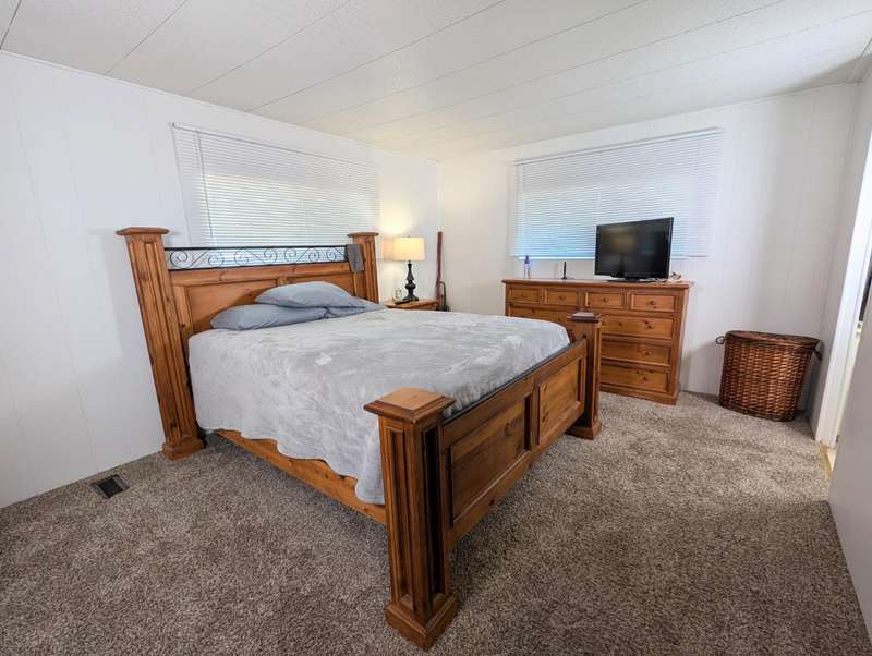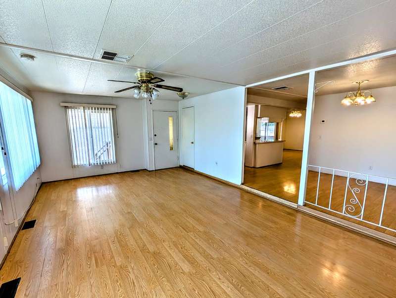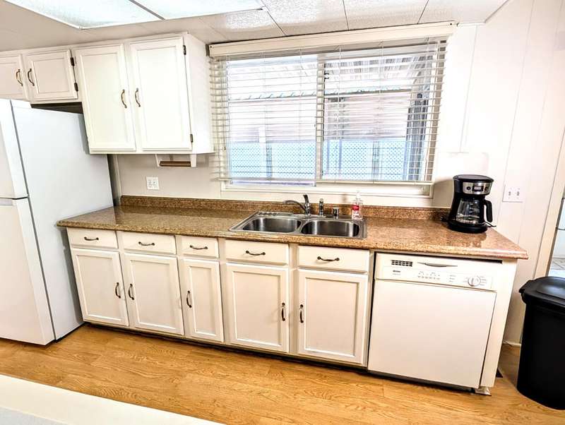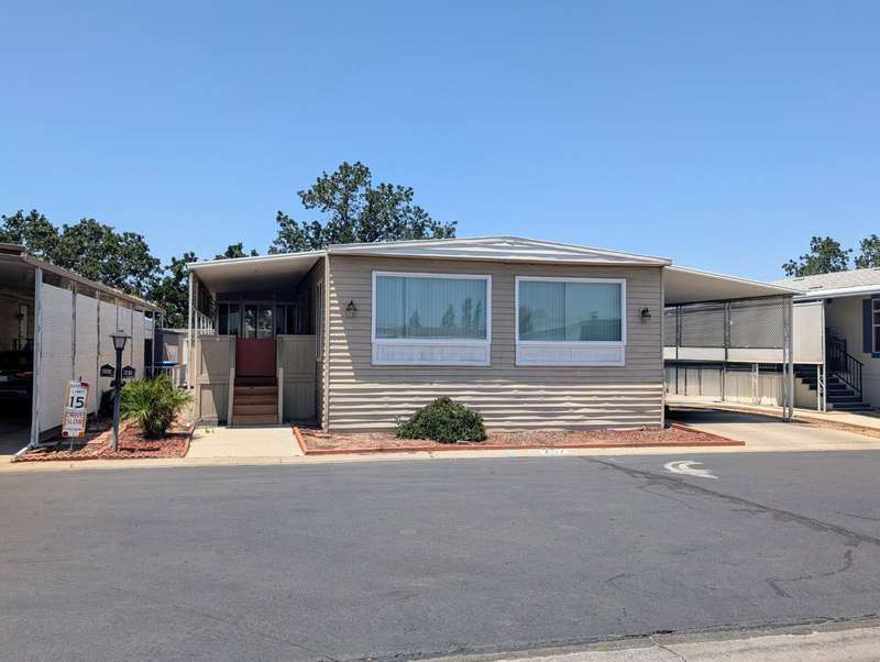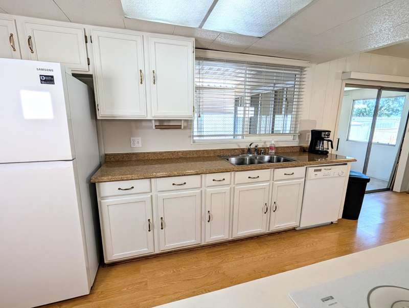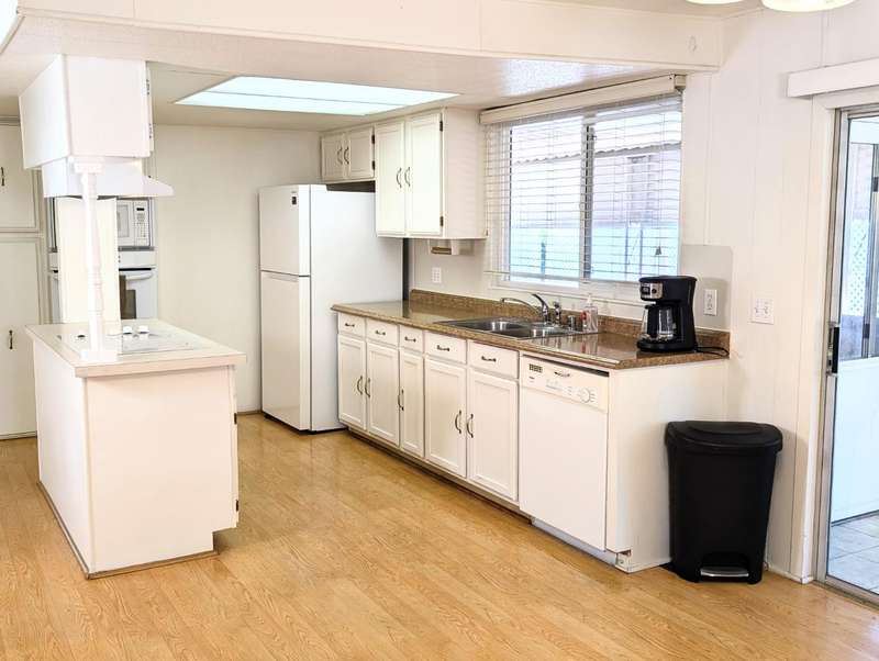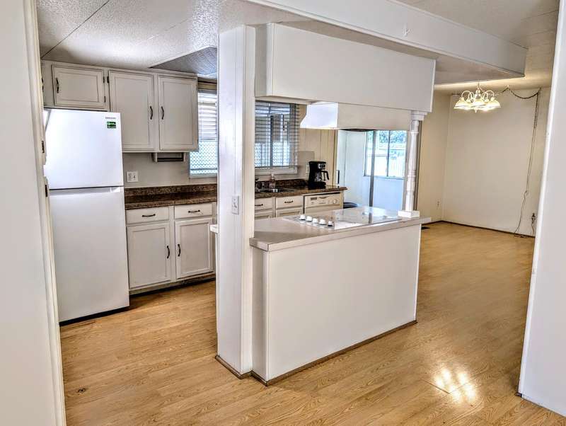 Clean mobile home in The Woods Mobile Home Park. This home offers a spacious living room, dining area with built in hutch for storage, open kitchen with stainless steel sink, electric stove,refrigerator plus washer/dryer included All appliances come with no warranty. The kitchen opens into a spacious room that could family room, office or craft room. There are 2 bedrooms with attached bathrooms. The bedroom closets are large for lots of storage. Inside utility room withwasher/dryer offers convenience for the home owner. The clubhouse offers a library, pool tables,exercise room and a newly beautiful updated large kitchen next to the very large meeting room The park offers many social activities during the year to keep you busy. Very close to shopping, doctors and medical facilities, freeways and many activities. You will love The Woods Mobile Home Park.