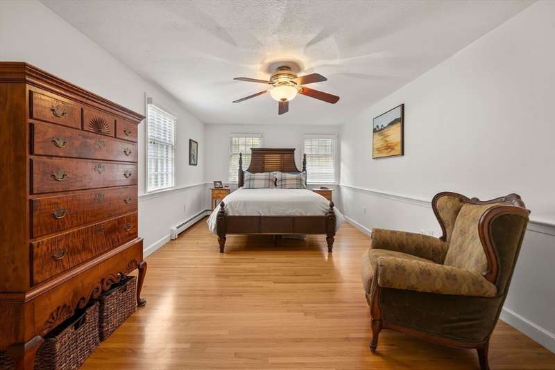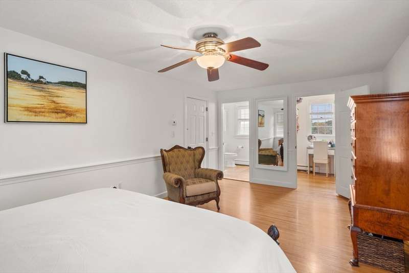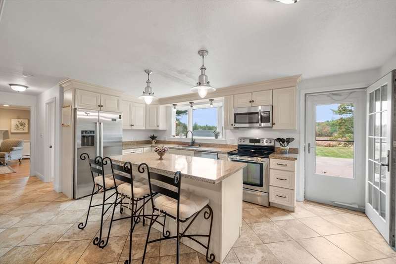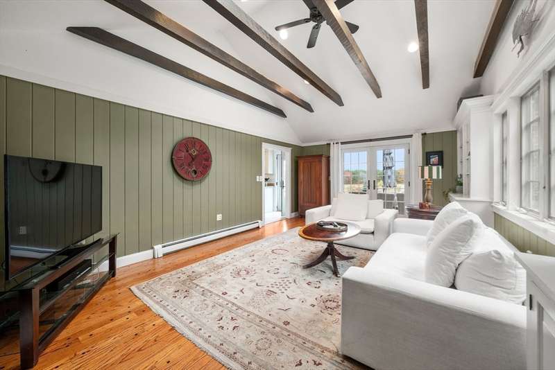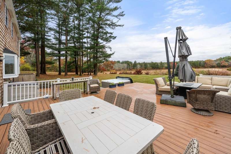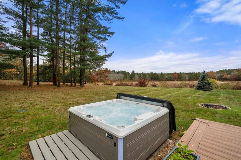 Charming and beautifully maintained Colonial home set on a private .94-acre lot, offering serene views of the surrounding cranberry bogs and amazing sunsets. This 4-bedroom, 2.5-bath residence exudes timeless New England charm with gleaming hardwood floors and two spacious living rooms, each featuring a cozy wood-burning fireplace. The kitchen showcases stainless steel appliances, ample cabinetry, and a welcoming layout ideal for everyday living and entertaining. Upstairs, the primary suite offers a private en suite bath for added comfort. Step outside to enjoy the peaceful natural setting from the expansive yard, complete with an inviting outdoor jacuzzi perfect for relaxing under the stars. Recent renovations include a partially finished lower level with a home gym, bonus room, and a dedicated storage area with a workbench. With a two-car garage and a set-back location ensuring exceptional privacy, this property combines classic style, modern updates, and tranquil outdoor living.