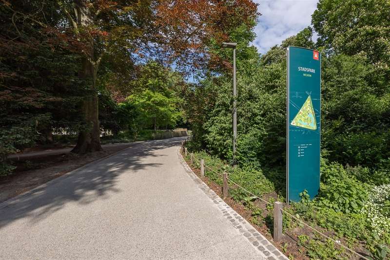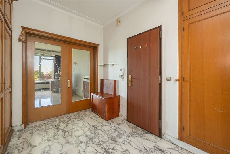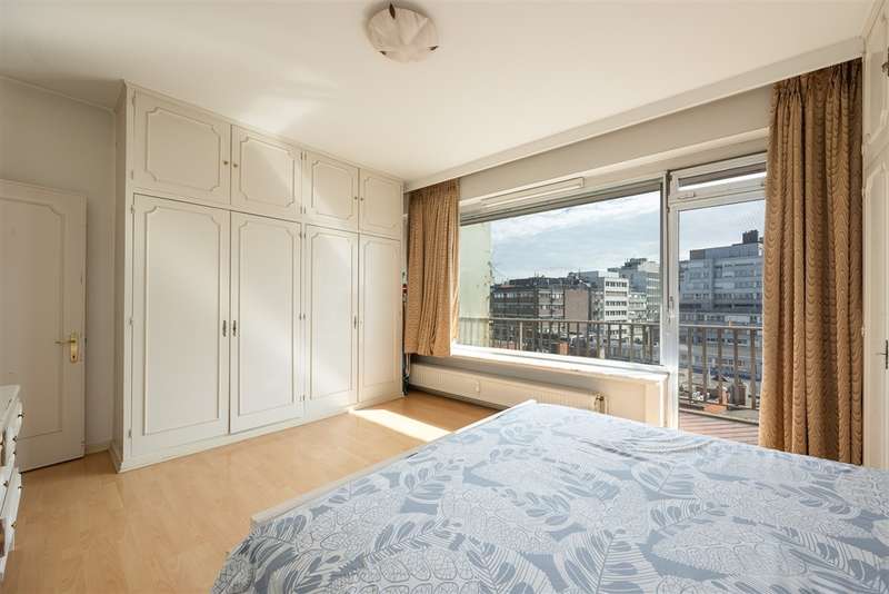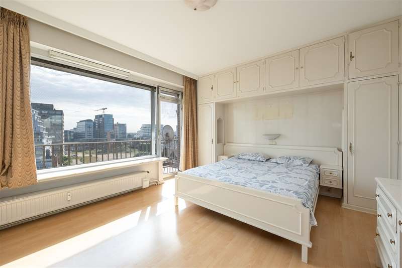 ANTWERP - Stadspark: Pleasant and bright flat with 2 bedrooms, beautiful views over the park and indoor car parking space. EPC label C. ; DESCRIPTION: ; The flat is located on the 8° floor of a well-maintained building. ; One enters the flat through a security door. Entrance hall with fitted wardrobes. Access to the bright and spacious living room (approx 55m²) with beautiful views over the City Park. Fitted kitchen (approx 13m²) with cupboards, appliances and dining area, opening onto a terrace (approx 3m²). To the rear, spacious bedroom 1 (approx 20m²) with fitted wardrobes, opening onto a full-width terrace (approx 7m²). Bedroom 2 (approx 13m²). Bathroom with bath (with shower possibility), washbasin, towel dryer and washing machine connection. ; Private cellar nr 8 included. Car parking space no 16 to be purchased at €35,000 ; PARTICULARS: ; * Air conditioning * Magnificent views over the City Park * EPC label C ;