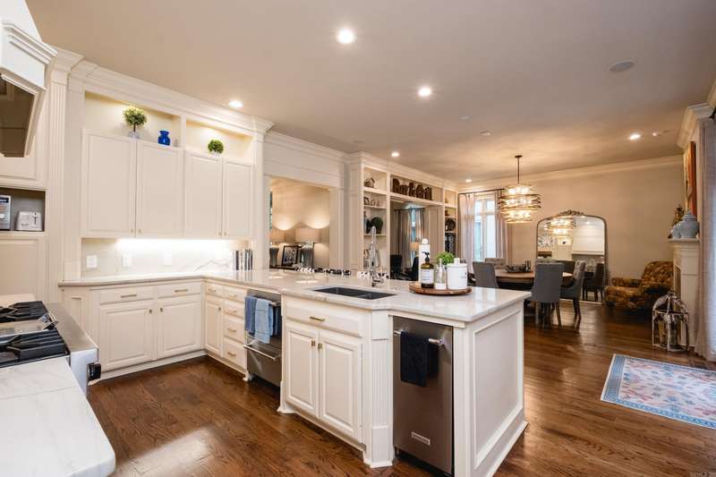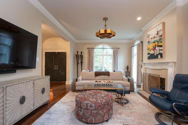 Experience luxury living on the Founders Course in this stunning home designed for comfort and entertaining. The chef’s kitchen features premium appliances and a large island that opens to a cozy hearth room with fireplace and a spacious great room with a second fireplace. A convenient butler’s bar adds the perfect touch for hosting. The main-level primary suite offers a spa-like retreat with custom clothing cabinets, a generous walk-in closet, soaking tub, oversized shower, and double vanities. Upstairs are two bedrooms, each with private sink and toilet areas sharing a central shower, plus a bonus space ideal for a workout area. Enjoy the outdoors year-round with a covered porch and fireplace overlooking the fairways plus a heated cocktail pool with lounging area. Extras include impressive walk-in storage for all your needs and whole house generator. A rare opportunity to own a golf course home blending style, function, and breathtaking views in the heart of Chenal. Come see!