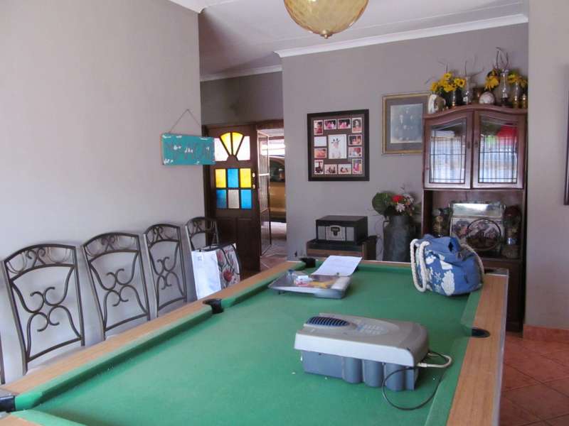 This beautiful house is situated right next to the golf course. Al 3 bedrooms are equipped with build in cupboards. The main bedroom has a ceiling fan. The 2 bathrooms are big enough for all your needs. The living room and open dinning room is where you and your family will exist. The kitchen is big enough for any thing and more. You will find that there is a scullery and laundry room separately from the kitchen. The yard is big enough for all kids and animals. There is a nice and big swimming pool, you will find that there is 2 garages and more covered parking spaces. Don't miss this opportunity to make this house yours.