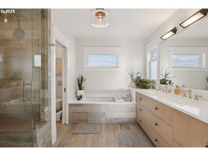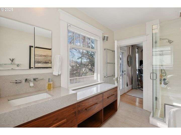 A rare opportunity in Northwest Portland’s coveted Alphabet District where timeless history meets modern luxury and sophistication. Originally built in 1905, this residence was meticulously renovated and expanded just a few years ago with over 1,000 square feet of new construction, seamlessly blending old-world character with contemporary luxury. Step inside and you’ll immediately notice the thoughtful design and refined finishes that set this home apart: Two Primary Suites both upstairs, each offering spa-like bathrooms, radiant floor heating, and custom closets. One features a steam shower, creating a true retreat. Entertainer’s Kitchen anchored by a 12-foot island, professional-grade appliances, and an elegant indoor-outdoor flow through folding glass doors that open to a manicured backyard and deck. Luxury Details Everywhere: custom closet systems, radiant floors in all three full upstairs baths, hardwood floors, and designer lighting throughout. Flexible Lower Level with its own exterior access, kitchen, and bedroom, this space is perfect for a nanny suite, in-law apartment, guest quarters, or conversion to a full ADU (plans available). Parking for Three — one car in the attached garage, one in the driveway, plus eligibility (per PBOT) for a permitted street space. A rare amenity in this neighborhood. Beyond the home itself, enjoy the best of Northwest Portland just outside your door: two blocks to the shops and restaurants of NW 23rd, Wallace Park and Chapman School right across the street, and a short stroll to incredible urban hiking in Forest Park. With quick access to downtown and major freeways, the location is as practical as it is prestigious. This home is a perfect blend of history, comfort, and modern livability. An exceptional residence in one of Portland’s most desirable neighborhoods. [Home Energy Score = 5. HES Report at https://rpt.greenbuildingregistry.com/hes/OR10235262]