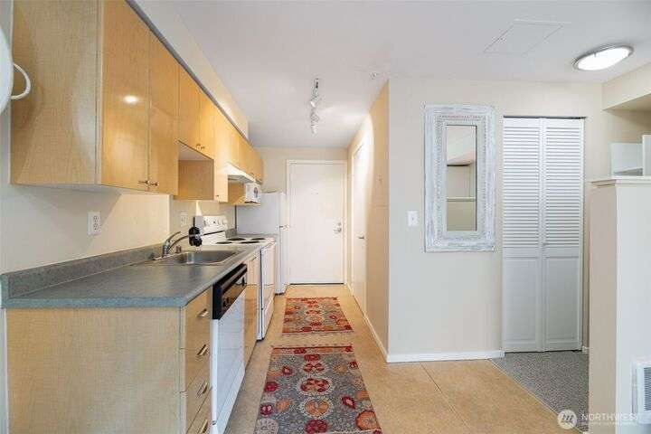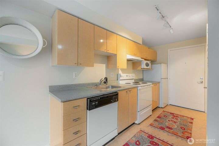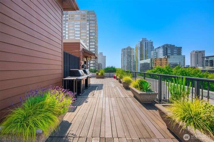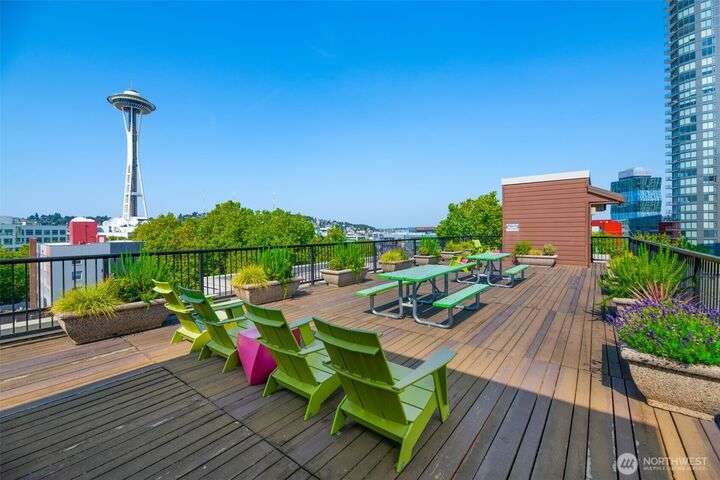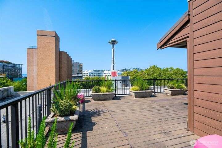 Convenient city living awaits in this downtown Seattle condo set on a high floor with an open floor plan, private deck, and peaceful courtyard setting. Fresh new carpet, paint, and a new refrigerator enhance the bright interior, while the building’s rooftop deck showcases iconic Space Needle and city views. One parking space and a dedicated storage unit provide everyday ease. Just steps from Seattle Center, Whole Foods, shops, and restaurants, this home offers comfort and connection in the heart of the city.
