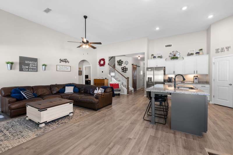 This home offers a well-designed layout with both convenience and versatility: Sit on your rocking chair front porch morning and night. Three bedrooms are located on the main level, providing ample space for family or guests. Two full bathrooms are situated on the main level for easy accessibility. A laundry room is conveniently located on the main level, making household chores more manageable. The second floor features an additional bedroom and a full bathroom, offering privacy and flexibility. A spacious, open bonus room on the second floor can be used in so many ways a home office, additional living space, another bedroom depending on your needs. The home includes a two-car garage, providing secure parking and additional storage space. The property sits on a level lot, making it easy to maintain and ideal for outdoor activities. A level backyard with a privacy fence ensures privacy and safety.