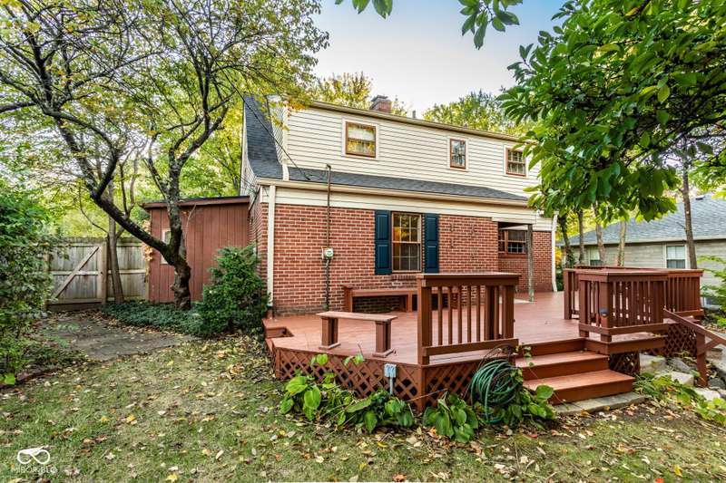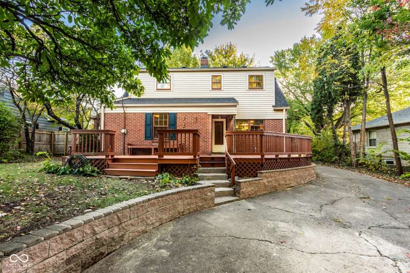 The charm of Broad Ripple and the convenience of Glendale await with this classic Cape Cod featuring three spacious bedrooms, including one on the main level - ideal for home office or guests. Primary bedroom features a chic walk-in closet with a custom shelving system. Beautiful original hardwoods throughout plus a cozy den off the living room, ideal as a study or playroom. Bonus room in the basement with very retro original knotty pine paneling has so many possibilities! Enjoy the view from the oversized deck of the surprisingly private, huge fenced rear yard with a canopy of mature trees . Think bonfires and cookouts! Brand new roof installed in September! All this, plus Washington Township Schools, awesome walkability to several trails, shopping and the Farmers Market!