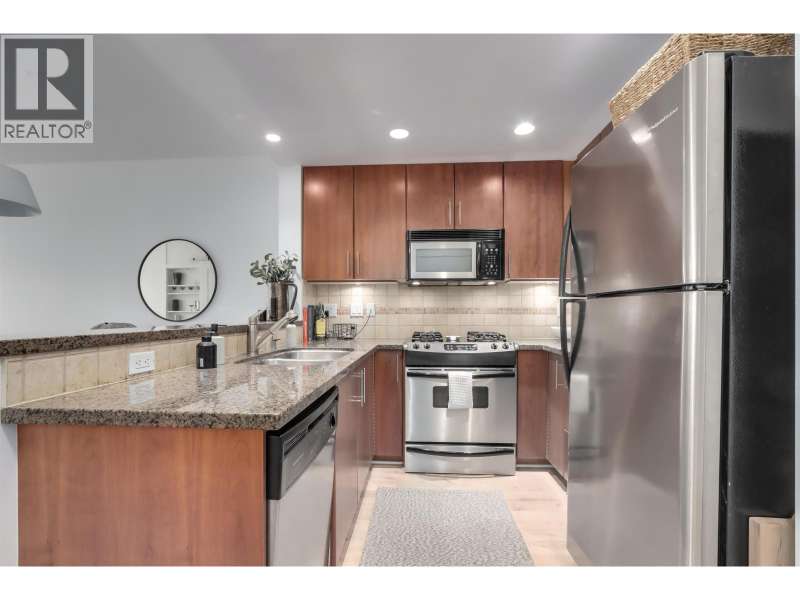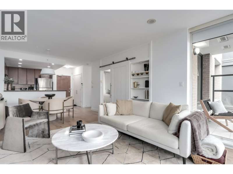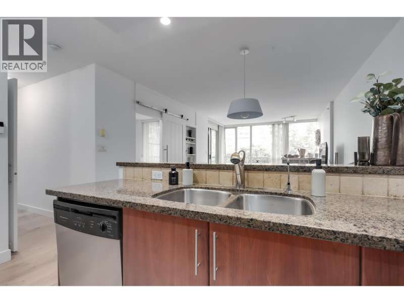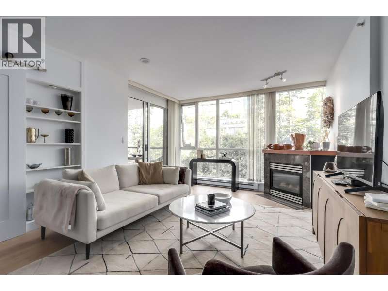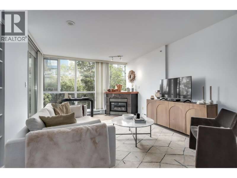 Welcome to the fabulous Verona of Portico, a highly desirable development in the heart of South Granville, built by Bosa. A walkers paradise! This spacious 2 bedroom + 2 bath has gorgeous newer floors, custom built cabinetry in master bedroom for ample storage plus a large covered balcony. The substantial living area, featuring a gas fireplace, is perfect for entertaining or relaxing. The kitchen boasts rich wood cabinets, granite countertops, stainless steel appliances. The well-managed building provides amenities: guest parking, exercise centre, bike rooms, hot tub & sauna. 1 secured parking stall and 1 storage locker. 1 cat or dog is welcome. Enjoy urban living at its finest, just steps from transit, restaurants, and Granville Island.Quick possession. OPEN SAT Sept 27TH, 1:00-3:00P.M. (id:58403)