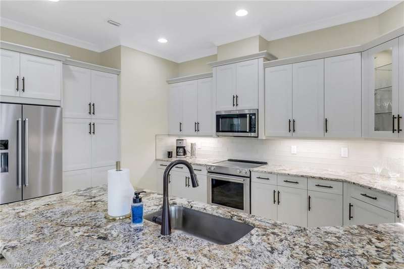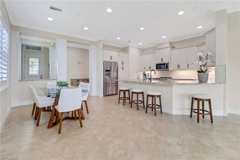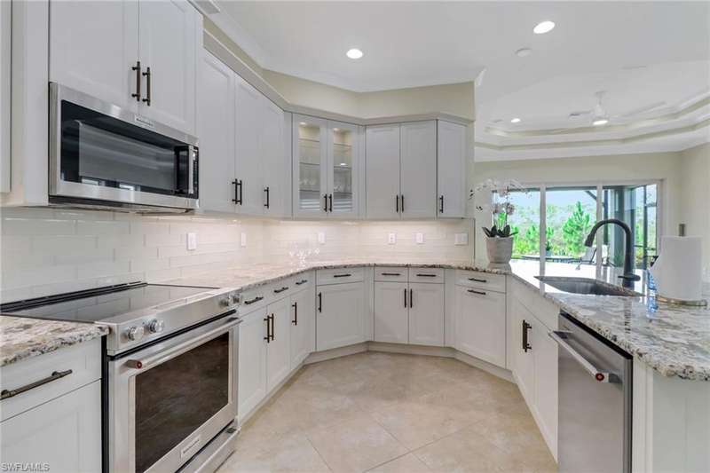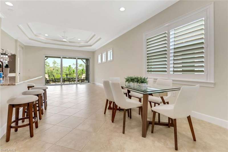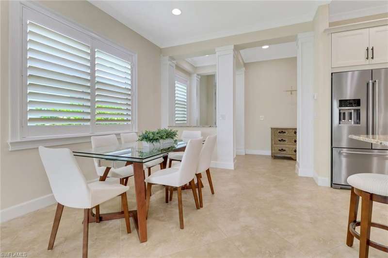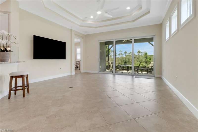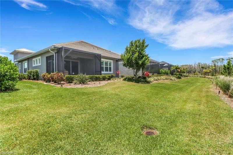Nestled within the exclusive, gated community of The Isles of Collier Preserve, this beautifully appointed and rarely available Mimosa Model villa offers an exceptional blend of comfort and sophistication, along with breathtaking preserve views. This 2-bedroom, 2-bathroom villa with a den has been immaculately maintained and designed with elegant touches throughout. The spacious open-concept floor plan has a seamless flow providing an inviting atmosphere perfect for entertaining and everyday living. The kitchen boasts high-end upgrades which include granite countertops, tile backsplash, pull-out pantry shelving, glass accent cabinets with lighting, a true chef's island with seating for six, top-tier KitchenAid stainless steel appliance package, upgraded sink, faucet and custom hardware. Elegant design features are visible throughout such as plantation shutters, tray ceilings, crown molding, custom trim columns, upgraded window casings, door casings and oversize base molding ele