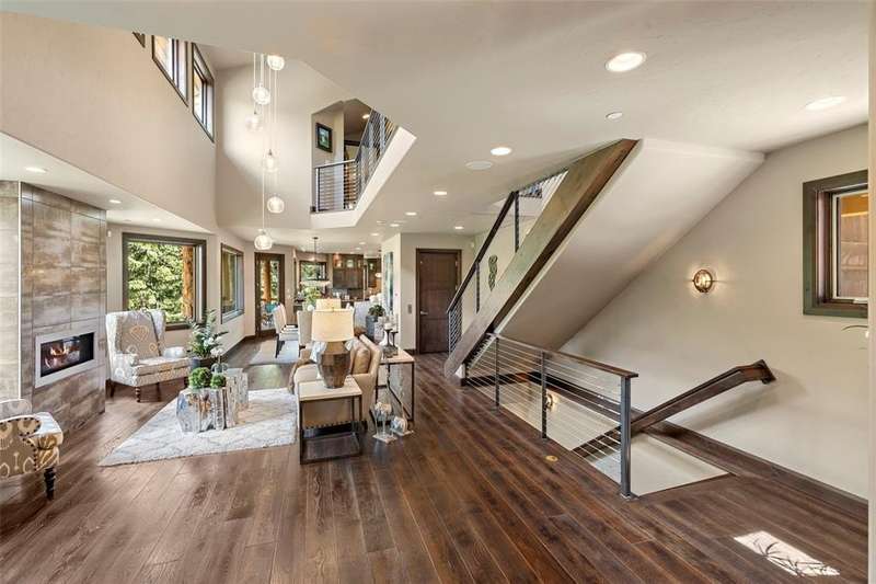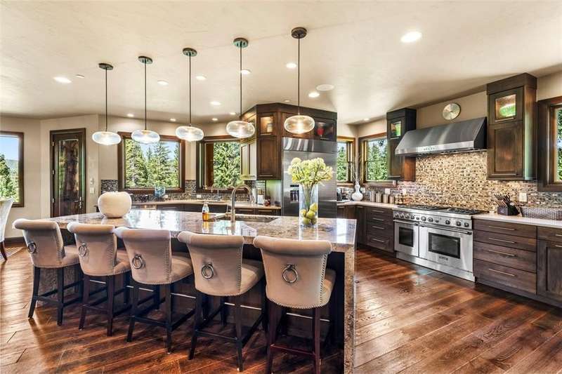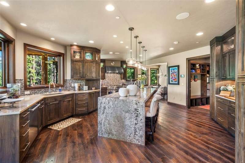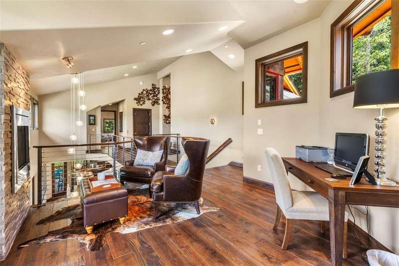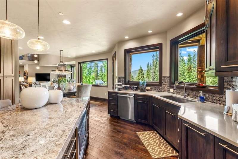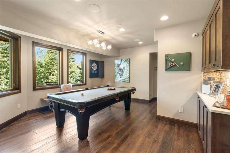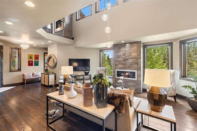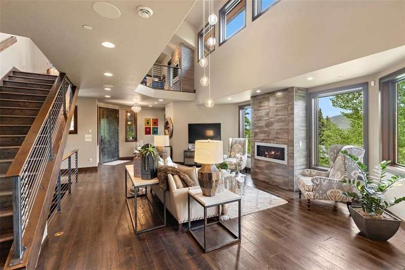 Just a 7-minute walk or ski to the base of Peak 9 and downtown Breckenridge, this stunning 6-bedroom, 8-bath, 6,043 sq ft mountain retreat is nestled on a large, wooded lot at the end of a quiet street in the exclusive Warriors Preserve neighborhood. A Parade of Homes winner, this custom-built residence earned 6 of 8 awards the year it was showcased — and it’s easy to see why. With an open, modern floor plan and abundant natural light, the home features soaring windows and multiple decks that showcase sweeping views of Baldy Mountain. Thoughtfully designed for luxury and function, it includes two expansive primary suites, a private nanny’s quarters with a separate entrance, and an elevator that services all levels of the home. Ideal for entertaining, the chef’s kitchen offers a generous breakfast nook, oversized bar area, and ample space for dining and gathering. The lower level includes a media room and pool table area — the perfect setting for après-ski relaxation or cozy nights in. After a day on the mountain, unwind in your private outdoor hot tub, surrounded by trees and alpine serenity. The home also features multiple gas fireplaces, a two-car attached garage with two additional covered parking spaces, and unmatched privacy, bordered by mature forest and steps from national trails. This is true luxury mountain living — where timeless design, premier location, and exceptional craftsmanship converge in a rare alpine offering.