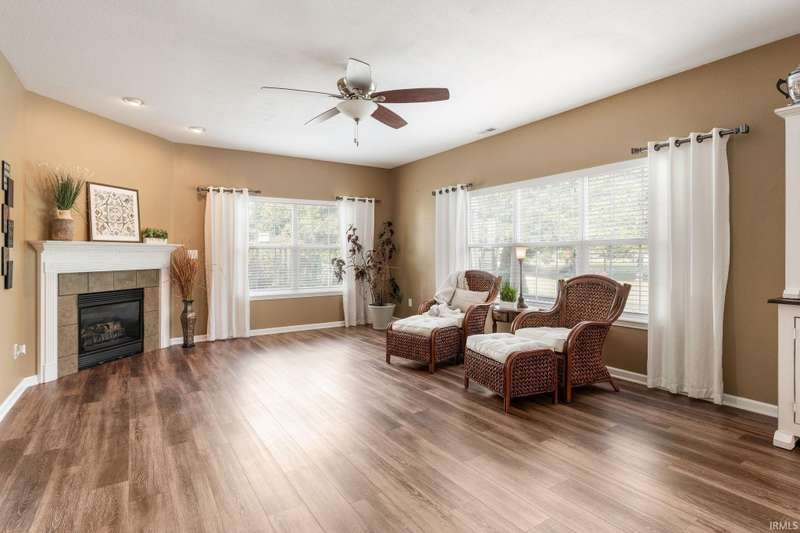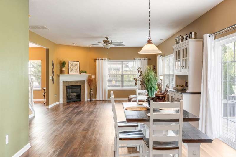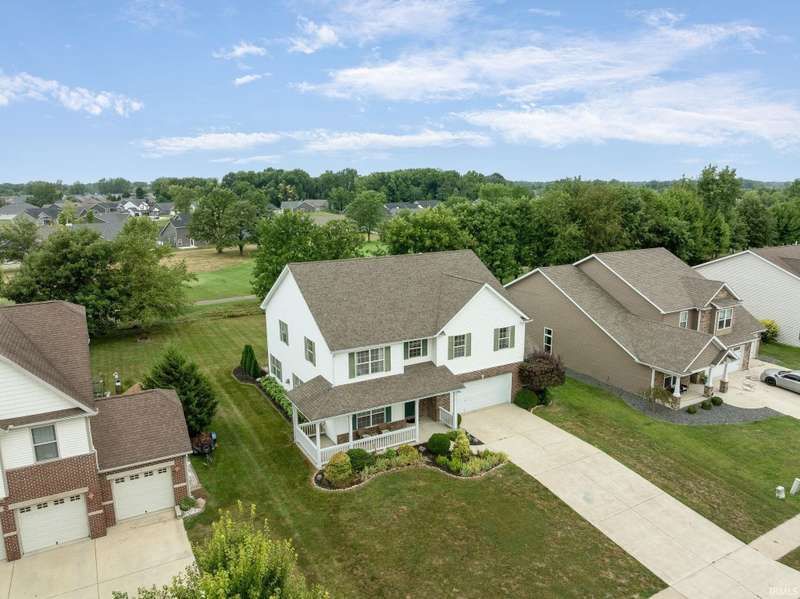Seller is offering a $4,000 flooring allowance. This beautifully maintained 4-bedroom, 2.5-bath home offers nearly 3,200 sq ft of living space and sits right on the 6th tee box with stunning golf course views. From the moment you arrive, the charming wraparound covered porch sets the tone for the inviting spaces inside. Step into the main level and you’ll find an open 45 ft family room, dining, and kitchen combo—a true entertainer’s dream—anchored by a cozy gas fireplace. The updated flooring throughout the main level enhances the modern, welcoming feel. A private home office and a half bath add convenience, while the large great room offers even more living space for gatherings. Upstairs, every bedroom is generously sized with its own walk-in closet. The oversized primary suite is a retreat of its own with his and hers walk-in closets, dual vanities, and a garden tub. A spacious loft provides an extra living area, and a keypad-locked storage closet ensures your valuables stay secure. Outside, enjoy morning coffee or evening relaxation on the newer back deck overlooking the golf course, or explore the nearby walking trails leading to Jackson Morrow Park. The 2-car garage with a bump-out workshop space makes room for hobbies, storage, or golf gear. This home combines comfort, function, and lifestyle in a setting that’s hard to beat—steps from golf, trails, and just minutes to Golf Up 31.