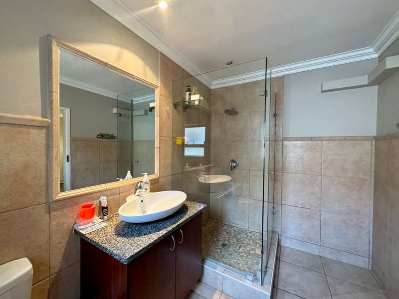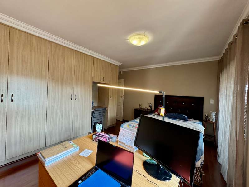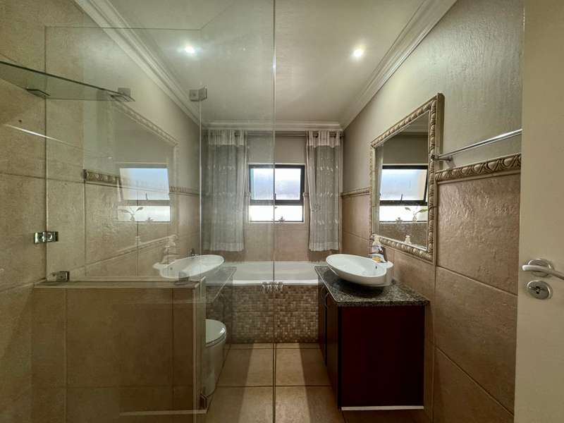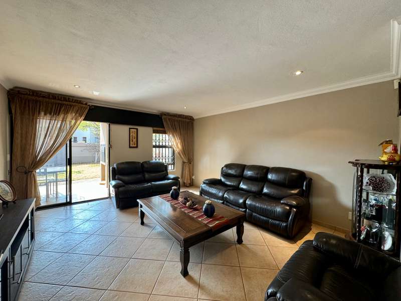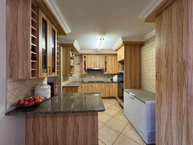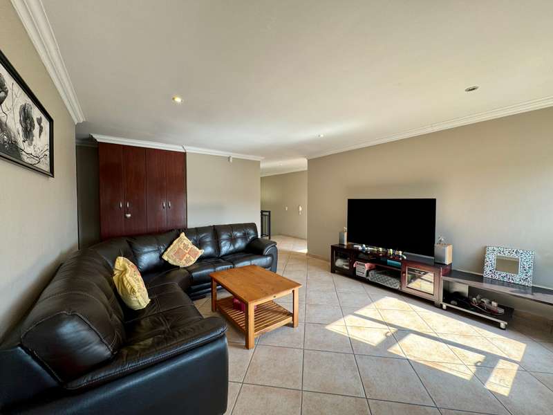 Discover this exceptional house located in the highly sought-after complex of The Wilds. This secure estate offers 24-hour security, ensuring peace of mind and a safe environment for you and your family. As you enter the house through the front door, you are greeted by a bright and inviting living area to your left, which opens up to a patio, perfect for outdoor entertaining. A small hallway from the entrance leads you to the kitchen, dining area, and another living area. The kitchen and dining area are to your right, featuring granite countertops, ample cupboard space, a four-plate stove top, and a mid-level oven built into the cupboards. A scullery with a double sink and connections for a washing machine and dishwasher is conveniently located to the left of the kitchen. The second living area, also on the ground floor, leads out to the patio, providing additional space for relaxation and entertainment. Under the stairs, there is a guest toilet for added convenience. Moving upstairs, you'll find four spacious bedrooms, each with built-in cupboards and plenty of room for double beds. The main bedroom boasts a walk-in closet and an en-suite bathroom with a double vanity sink, large shower, bath, and toilet. The second bedroom also has its own en-suite bathroom with a shower, toilet, and sink. The remaining two bedrooms share a separate bathroom, equipped with a shower, toilet, and sink. Additionally, the top floor features a pajama lounge and a patio/study area, perfect for relaxation or as a quiet workspace. The patio downstairs includes a built-in braai, and beyond the patio lies a small, well-maintained garden, providing a serene outdoor space. This house comes with a garage that has space for two cars. The Wilds complex is known for its exceptional security and community amenities, making it a prime choice for discerning buyers. Don't miss out on the opportunity to own this beautiful house in The Wilds Estate. Contact us today to schedule a viewing and experience the charm and comfort this home has to offer.