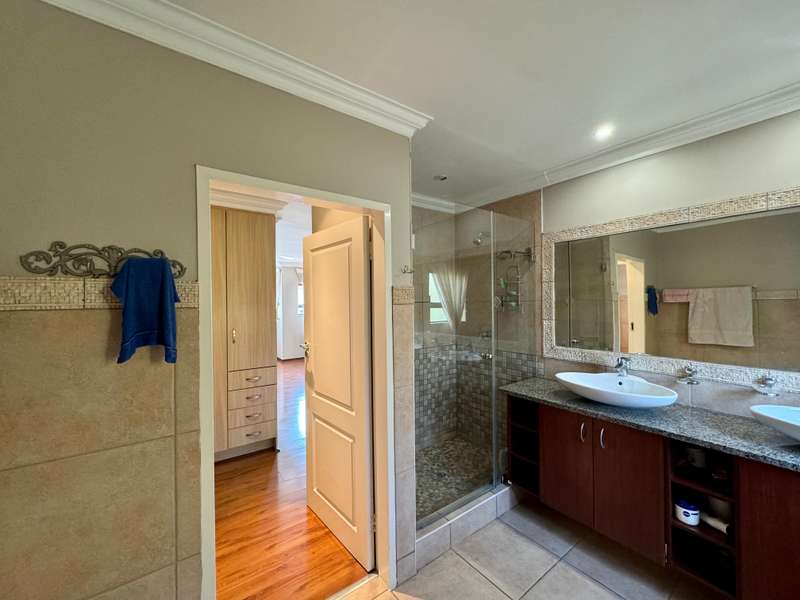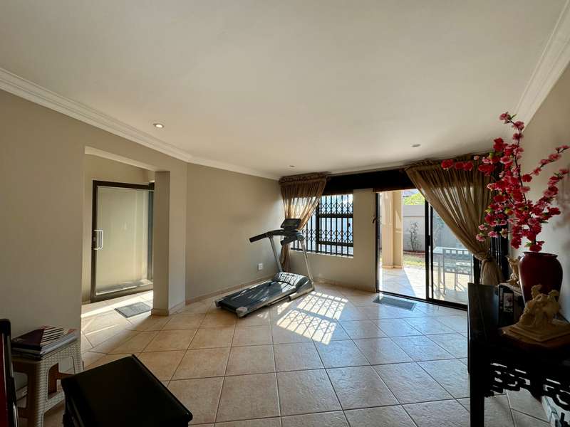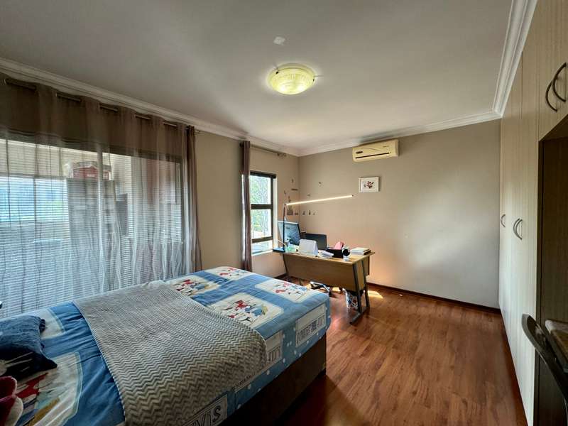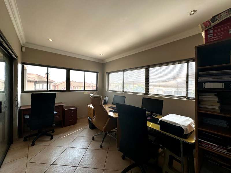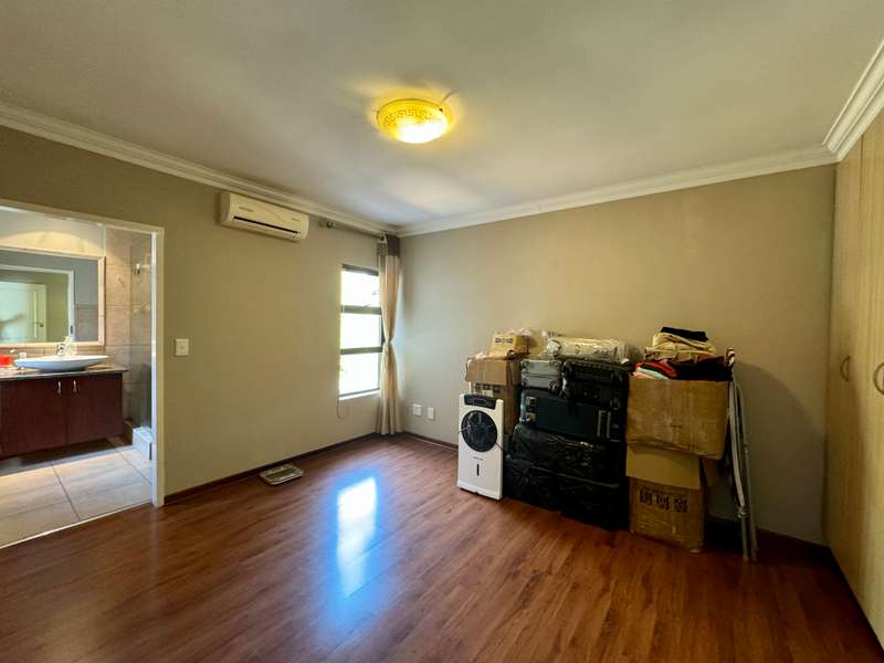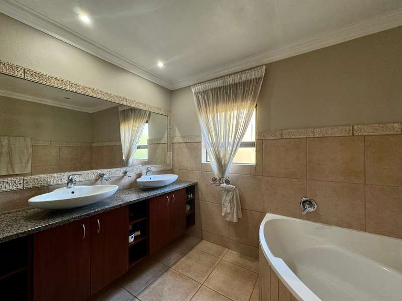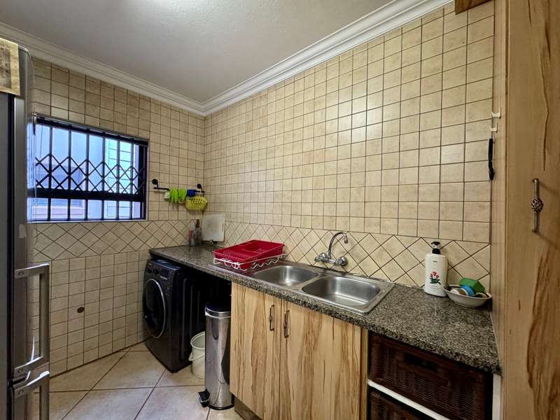 Discover this exceptional house located in the highly sought-after complex of The Wilds. This secure estate offers 24-hour security, ensuring peace of mind and a safe environment for you and your family. As you enter the house through the front door, you are greeted by a bright and inviting living area to your left, which opens up to a patio, perfect for outdoor entertaining. A small hallway from the entrance leads you to the kitchen, dining area, and another living area. The kitchen and dining area are to your right, featuring granite countertops, ample cupboard space, a four-plate stove top, and a mid-level oven built into the cupboards. A scullery with a double sink and connections for a washing machine and dishwasher is conveniently located to the left of the kitchen. The second living area, also on the ground floor, leads out to the patio, providing additional space for relaxation and entertainment. Under the stairs, there is a guest toilet for added convenience. Moving upstairs, you'll find four spacious bedrooms, each with built-in cupboards and plenty of room for double beds. The main bedroom boasts a walk-in closet and an en-suite bathroom with a double vanity sink, large shower, bath, and toilet. The second bedroom also has its own en-suite bathroom with a shower, toilet, and sink. The remaining two bedrooms share a separate bathroom, equipped with a shower, toilet, and sink. Additionally, the top floor features a pajama lounge and a patio/study area, perfect for relaxation or as a quiet workspace. The patio downstairs includes a built-in braai, and beyond the patio lies a small, well-maintained garden, providing a serene outdoor space. This house comes with a garage that has space for two cars. The Wilds complex is known for its exceptional security and community amenities, making it a prime choice for discerning buyers. Don't miss out on the opportunity to own this beautiful house in The Wilds Estate. Contact us today to schedule a viewing and experience the charm and comfort this home has to offer.