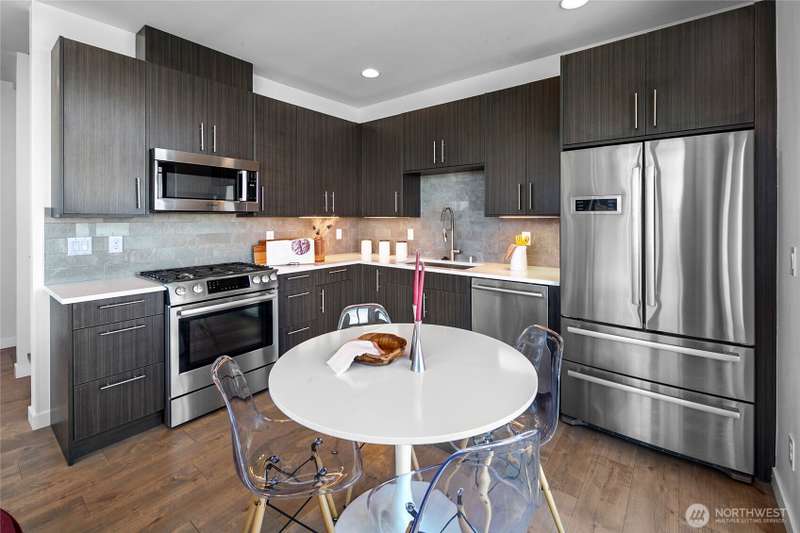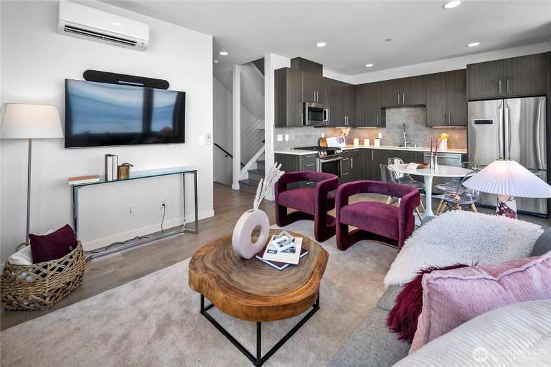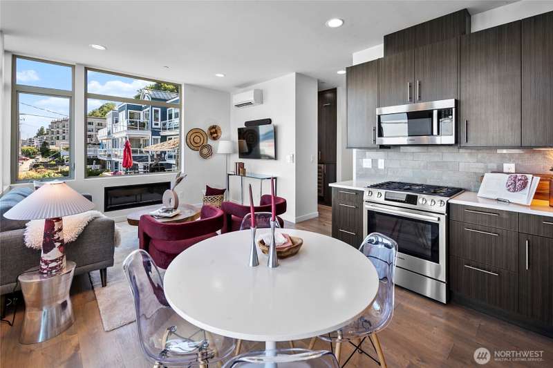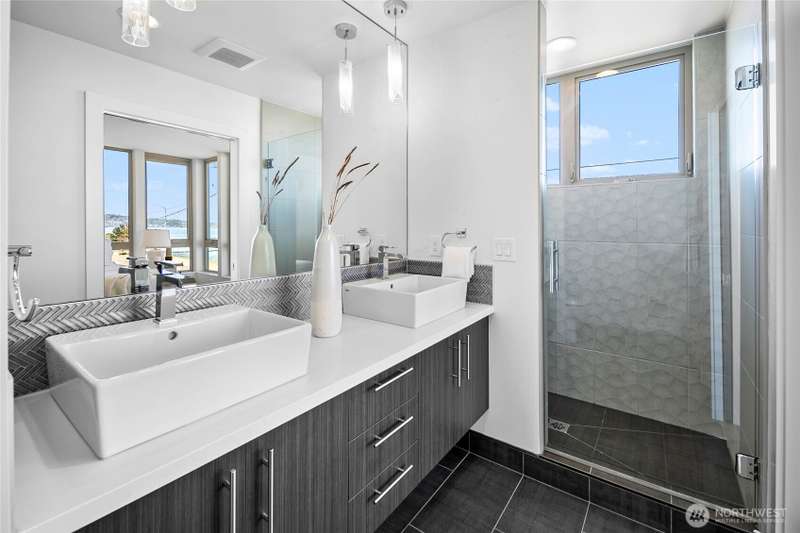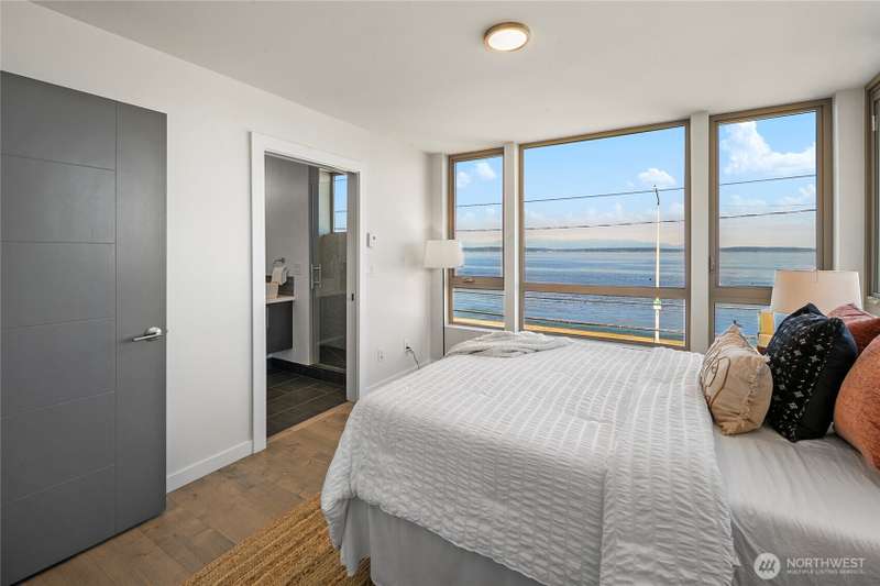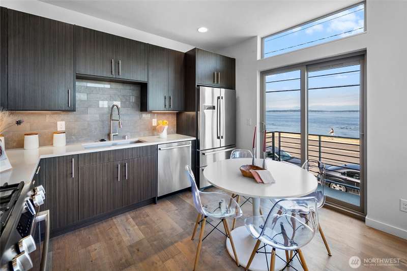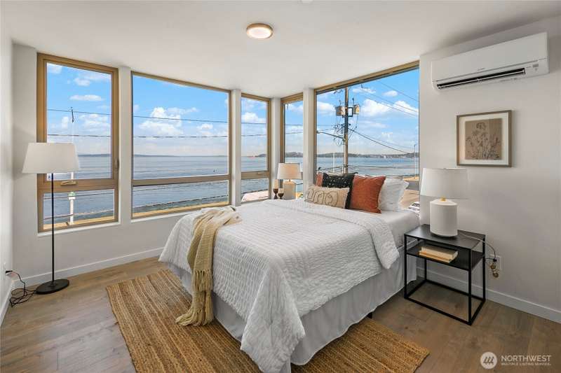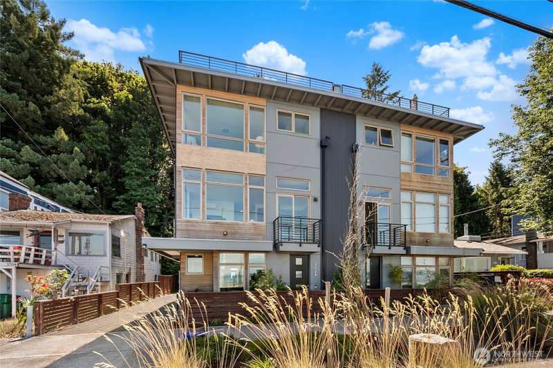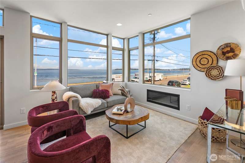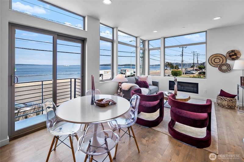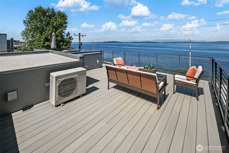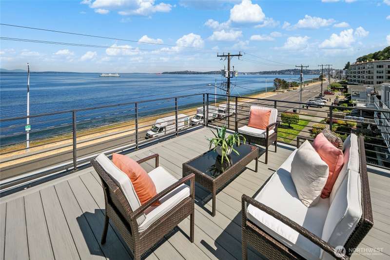 Breathtaking views from every floor of this Alki home! Watch cruise ships, ferries, and sailboats glide across 180° vistas of Puget Sound, the Olympics, Magnolia, and Queen Anne from every room and expansive rooftop deck. The gourmet kitchen features a gas range, stainless appliances, and opens to a deck overlooking Alki. The top-floor primary suite offers a walk-in closet and en-suite bath. Second bedroom includes its own bath and walk-in. Includes an oversized attached garage plus a second parking spot. Just steps to the beach, waterfront ladder access, and all the best of Alki—shops, cafes, and stunning shoreline beauty.