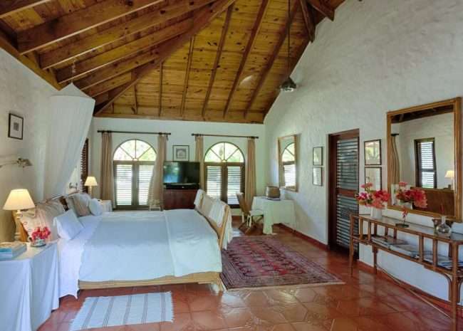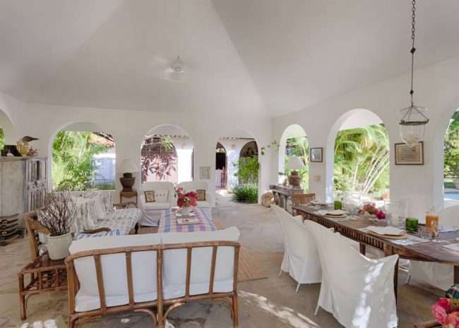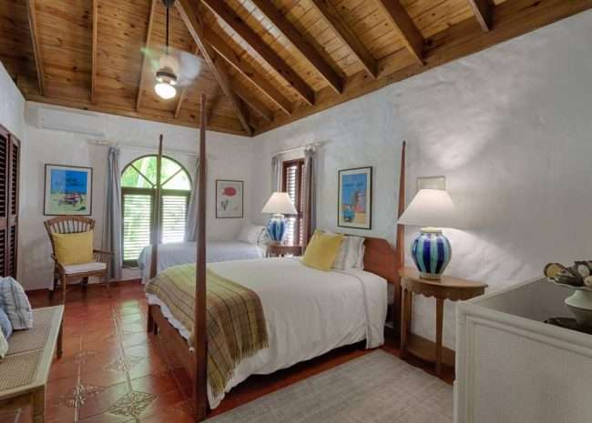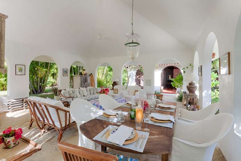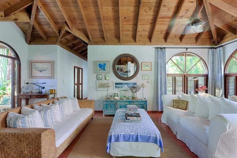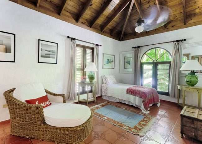 This is the most attractive & spacious single-story villa in the Caribbean style, with traditional mahogany louvered windows, vaulted ceilings, and terracotta tiled floors. The large sitting room has 4 floor-to-ceiling windows and double doors leading to the gazebo rear garden and swimming pool.