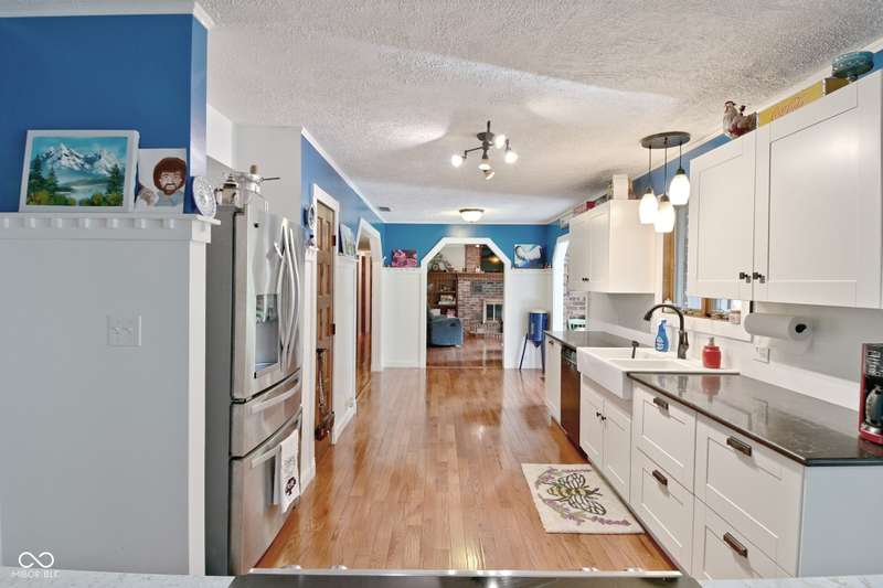 Nestled at 267 Queensway DR, AVON, IN, this single-family residence in Hendricks County presents an attractive property in great condition. Prepare to be captivated by a home designed for both refined living and tranquil relaxation. The living room serves as a focal point, boasting a fireplace that invites cozy evenings and conversation, a high ceiling and vaulted ceiling which elevates the sense of space, a beamed ceiling and skylight that adds architectural interest, and crown molding that brings a touch of elegance. Culinary dreams come to life in the kitchen, featuring a large kitchen island, an island range hood, stone countertops that offer both beauty and durability, shaker cabinets that provide ample storage, a kitchen bar perfect for casual dining, a stovetop ready for gourmet creations, and crown molding that ties the space together. The bathrooms offer a walk in shower, designed to be a serene space for rejuvenation. Outside, a patio and outdoor dining area awaits, promising delightful moments spent under the open sky. A shed provides practical storage solutions, while a woods view offers a sense of privacy and connection with nature. The convenience of a dedicated laundry room simplifies daily chores. With four bedrooms and three full bathrooms spread across two stories and 2730 square feet of living area, this home provides ample space to live comfortably on a generous 24394 square foot lot. Built in 1980, this residence represents a unique opportunity to experience gracious living in a desirable setting.