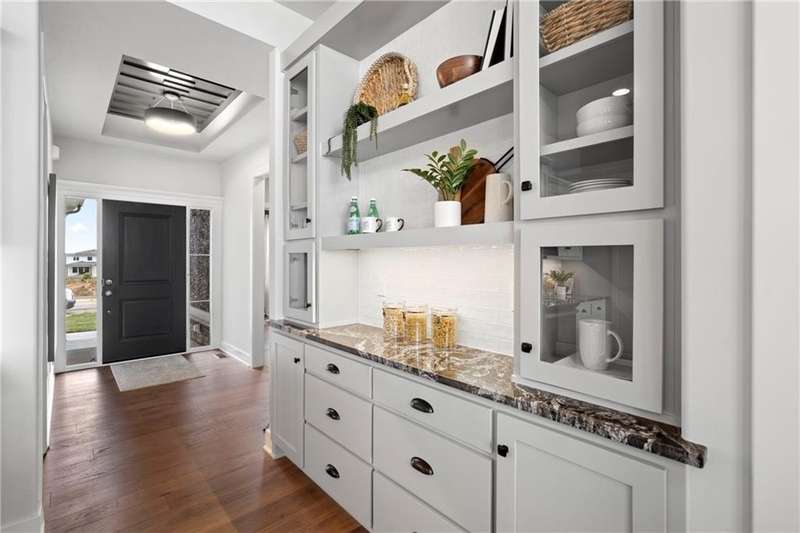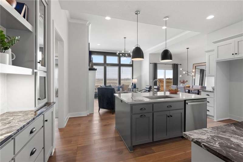 MODEL HOME NOT FOR SALE. The "Sonoma" Reverse by SAB Homes is here! This beautiful Villa has everything you need for your maintenance provided living. As you enter the foyer you are greeted with custom trim at ceiling and wainscotting. Stunning hardwoods that lead you into the Great Room with fireplace. The kitchen island faces the back windows with sink in island for convenience with all your entertaining. Pantry and great counterspace for all your needs. Dining room off the great room with access to covered patio. The Primary En-Suite is on the opposite side of the main level with windows to view back yard, bathroom with double vanity & shower - leads into the walk-in closet. Bedroom 2 and Bathroom 2 is off the entry. Mud hall and laundry is in the hallway behind the kitchen as you walk in from the garage. The lower level has bedroom #3 with walk-in closet with bathroom #3, Rec Room and wet bar next to the walkout-walkup feature that allow perfect access to back yard. Option for a 4th bedroom with optional walk-in closet. Excellent storage space as well. All in the coveted Heritage Ranch, A Lambie-Rieke Community, with Amenities Galore such as state-of-the-art pool, clubhouse, trails, pickleball. play area, half-court basketball, ponds and so much more coming soon! This community provides a wonderful lifestyle and right next to the 1,238 Acre Heritage Park with Dog Park, Sports Parks, Golf, Lake, Trails and so much more! Contact Onsite Agents for Estimated Completion of homes on site, and design selections. Sales Office OPEN 7 Days/Week, located at LOT 65. Renderings &/or images may show features and sq ft that are subject to change. Home is under construction. Welcome Home to Heritage Ranch - one of the last NEW Home Communities in Johnson County! LOT 79. Home is Under Construction with an Estimated Completion October 2025. Taxes and sizes are estimated.