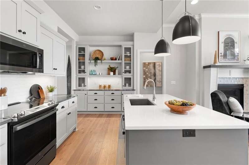 MODEL HOME NOT FOR SALE. The "Sonoma" Reverse by SAB Homes is here! This beautiful Villa has everything you need for your maintenance provided living. As you enter the foyer you are greeted with custom trim at ceiling and wainscotting. Stunning hardwoods that lead you into the Great Room with fireplace. The kitchen island faces the back windows with sink in island for convenience with all your entertaining. Pantry and great counterspace for all your needs. Dining room off the great room with access to covered patio. The Primary En-Suite is on the opposite side of the main level with windows to view back yard, bathroom with double vanity & shower - leads into the walk-in closet. Bedroom 2 and Bathroom 2 is off the entry. Mud hall and laundry is in the hallway behind the kitchen as you walk in from the garage. The lower level has bedroom #3 with walk-in closet with bathroom #3, Rec Room and wet bar next to the walkout-walkup feature that allow perfect access to back yard. Option for a 4th bedroom with optional walk-in closet. Excellent storage space as well. All in the coveted Heritage Ranch, A Lambie-Rieke Community, with Amenities Galore such as state-of-the-art pool, clubhouse, trails, pickleball. play area, half-court basketball, ponds and so much more coming soon! This community provides a wonderful lifestyle and right next to the 1,238 Acre Heritage Park with Dog Park, Sports Parks, Golf, Lake, Trails and so much more! Contact Onsite Agents for Estimated Completion of homes on site, and design selections. Sales Office OPEN 7 Days/Week. Renderings &/or images may show features and sq ft that are subject to change. Home is under construction. Welcome Home to Heritage Ranch - one of the last NEW Home Communities in Johnson County! LOT 79. Home is Under Construction with an Estimated Completion October 2025. Taxes and sizes are estimated.