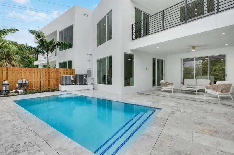 New construction, CONTEMPORARY waterfront villa located on South Fork of the Middle River. Stunning design w/ 4 spacious bedrooms & 3.5 baths, 2-stories w/ just under 3600 square feet of living area. Two-car garage & private dock wired for electric. From your second floor owner's suite, step onto an ample balcony (almost 200SF) overlooking peaceful water views & private 10x24 pool. Chef's kitchen w/ Thermador appliances & quartzite counters. Full size washer/dryer. Residence features modern design & high-end finishes. Centrally located, 3 minutes to the heart of Wilton Manors, 8 minutes to downtown Fort Lauderdale, 10 minutes to the beach! Please note pictures are of unit next door and meant to represent the style/finishes of property.