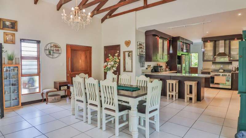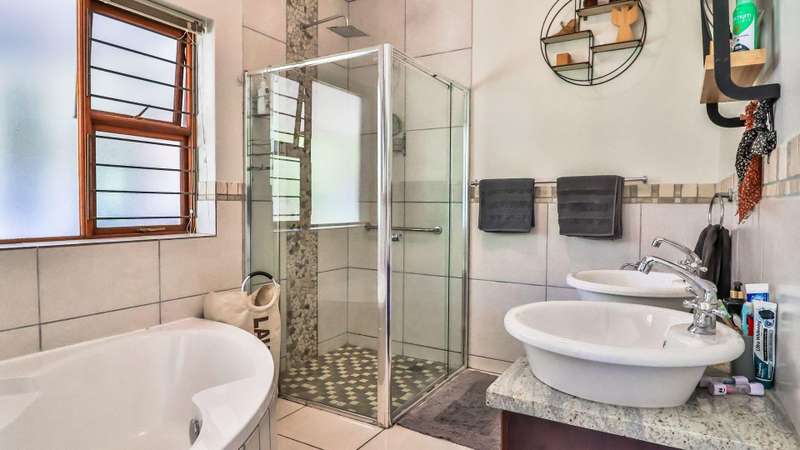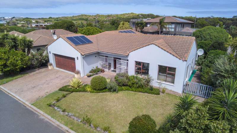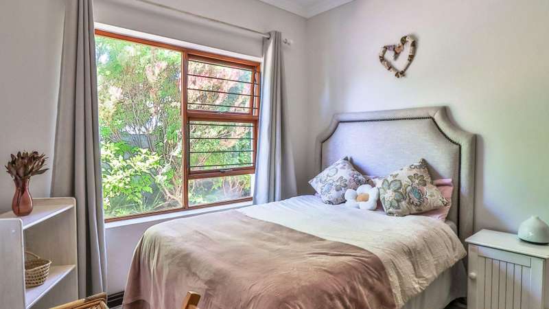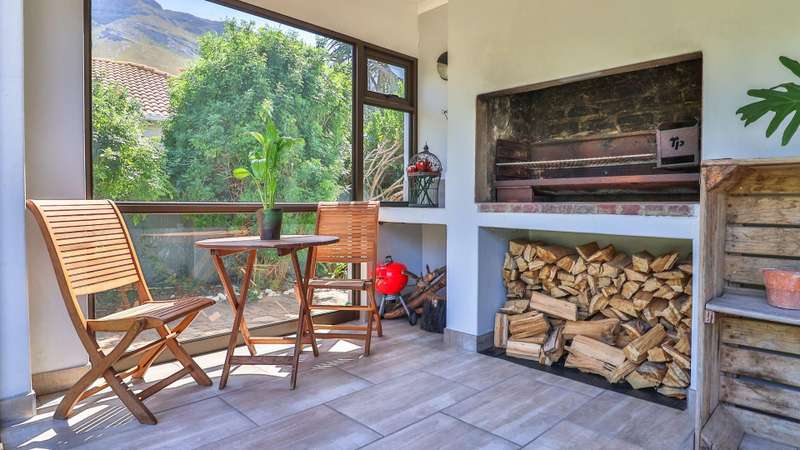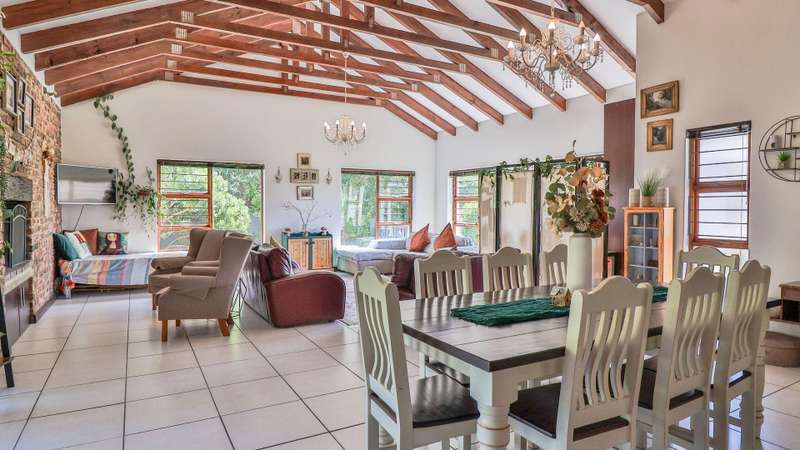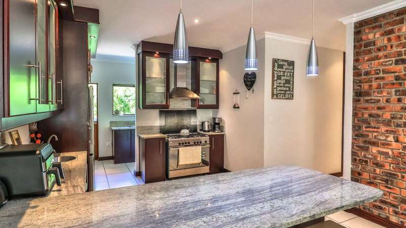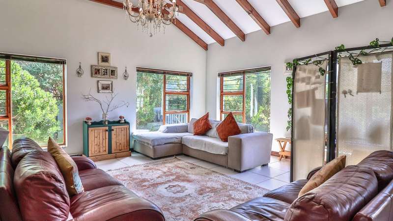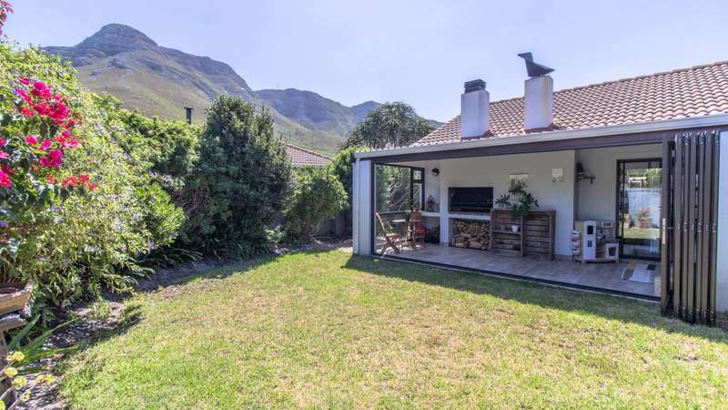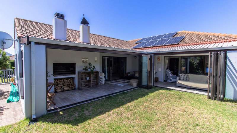 Sole Mandate - This is a total single level beauty, and beautiful in so many ways. The double volume open plan lounge is spacious enough to create various pockets of living space - sunny north facing lounge with a wood burner braai / fireplace combo, dining room and spacious fully fitted kitchen with floor to ceiling cupboards, granite countertops and separate scullery that leads to the double automated garage. The lounge area leads to a fully enclosed patio with a braai, of which the aluminium stacking doors can fully fold away to open this up to a lovely, private enclosed yard with its mountainous backdrop. From the main en-suite bedroom, you have access to the patio, creating a refreshing morning coffee seating area to enjoy your serene environment. Two more bedrooms share one bathroom. Guest amenities as well as a solar inverter system with irrigation rounding off this offering.