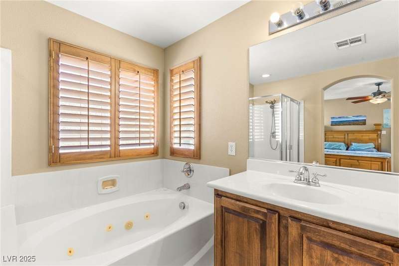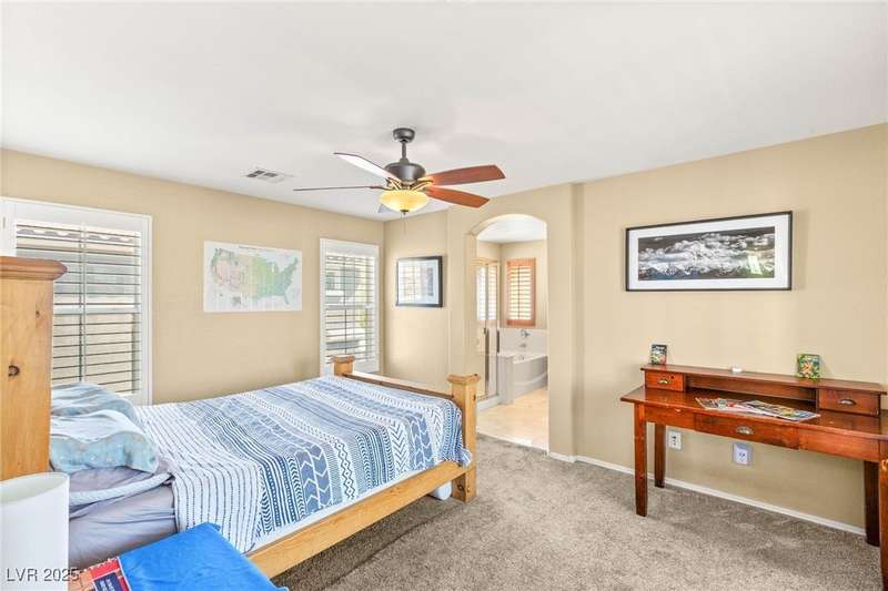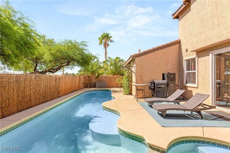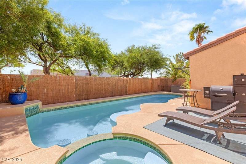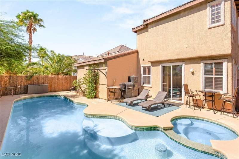 Location, lifestyle, and a backyard made for year-round enjoyment. Located in a prime Summerlin neighborhood just minutes from Downtown Summerlin and walking distance to Peet’s, Starbucks, Sprouts, Whole Foods, and Trader Joe’s. This well-maintained home offers an open layout with wood shutters throughout, stainless steel appliances, granite countertops, and owned solar panels. Step outside to a private backyard retreat with a sparkling pool and spa ideal for relaxing, entertaining, or weekend BBQs. A large private driveway adds both curb appeal and everyday convenience. Enjoy nearby parks, walking trails, and direct access to world-class road and mountain biking. The downstairs den with full bath provides flexible space for guests or a home office. A true Summerlin gem designed for an active, vibrant lifestyle.