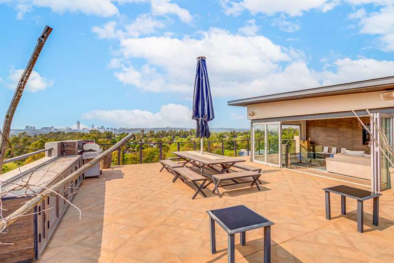 Experience elevated living in this exceptional penthouse located in a secure, upmarket complex with only 22 units. Designed for discerning buyers, this residence offers uninterrupted views of Sandton and Johannesburg, sophisticated finishes, and expansive entertainment spaces. Property Highlights ?Çó Three spacious en-suite bedrooms, each with private balconies and panoramic city views ?Çó Gourmet kitchen with high-end appliances, sleek cabinetry, and a separate scullery ?Çó Open-plan living and dining areas with seamless flow to outdoor spaces ?Çó Upstairs private suite with lounge, built-in bar, and direct access to rooftop terrace ?Çó Rooftop entertainment area featuring outdoor showers, sun deck, and lounge zone ?Çó Tandem garage with secure access ?Çó All rooms open to balconies with unobstructed skyline views Complex Features ?Çó Resort-style swimming pool ?Çó Clubhouse for residents ?Çó Water tanks for sustainable water supply ?Çó 24-hour security and access control via boom gate Location Benefits ?Çó Walking distance to St Stithians College ?Çó Minutes from Sandton CBD, top restaurants, shopping centres, and medical facilities ?Çó Easy access to major transport routes This property offers a rare combination of privacy, luxury, and location. With expansive living areas, multiple entertainment zones, and unmatched views, it is ideal for professionals, families, and investors seeking premium real estate in Johannesburg.